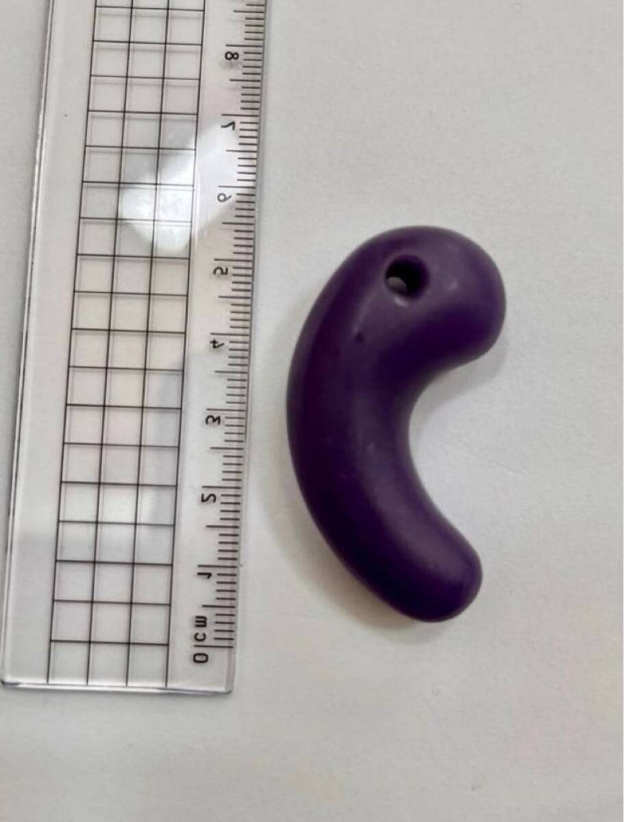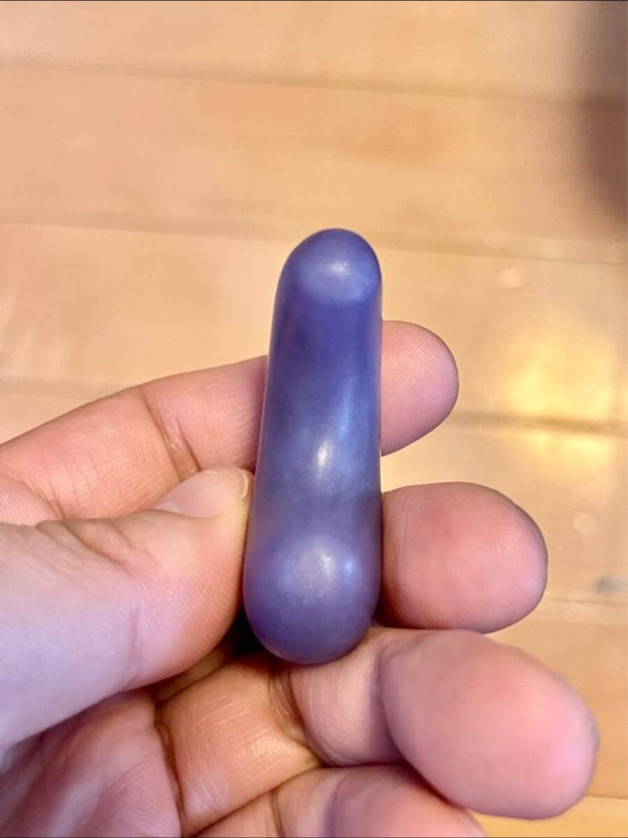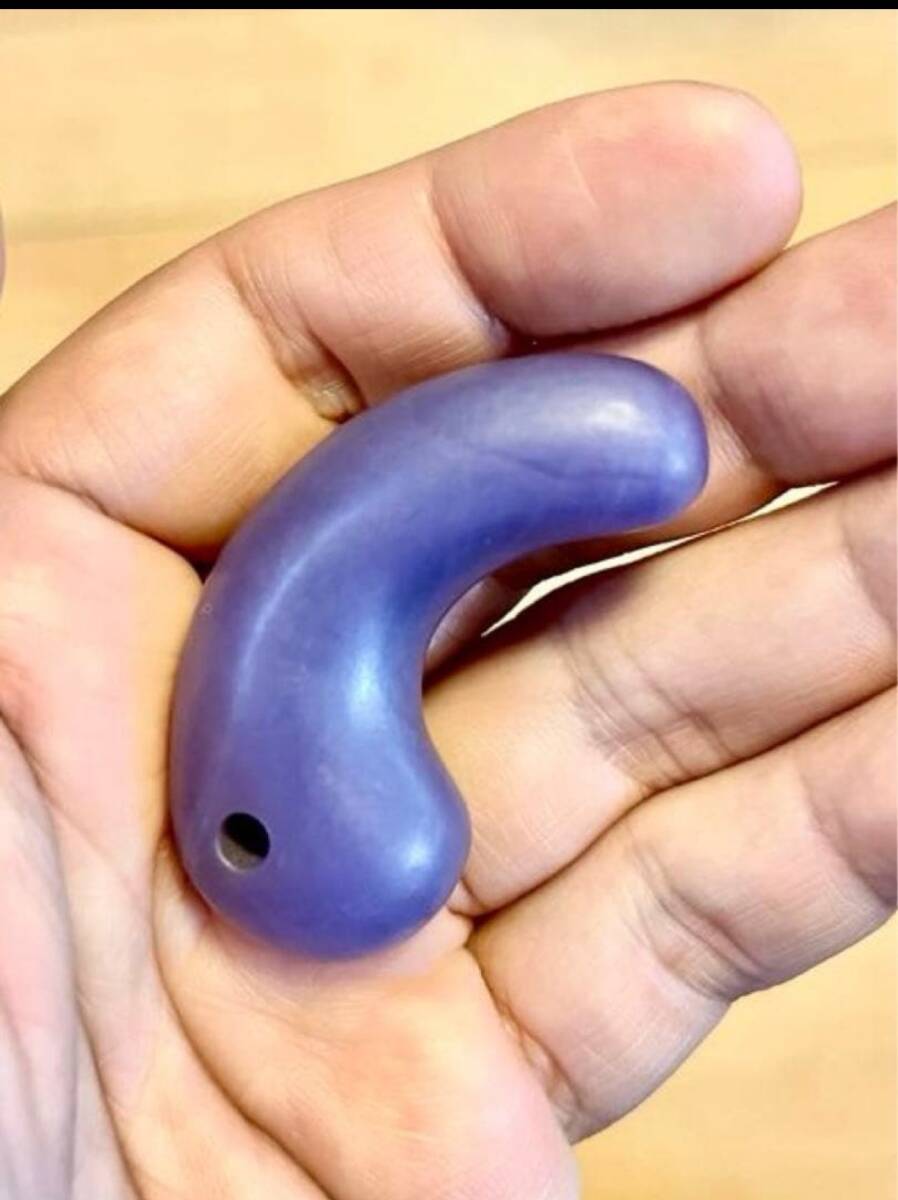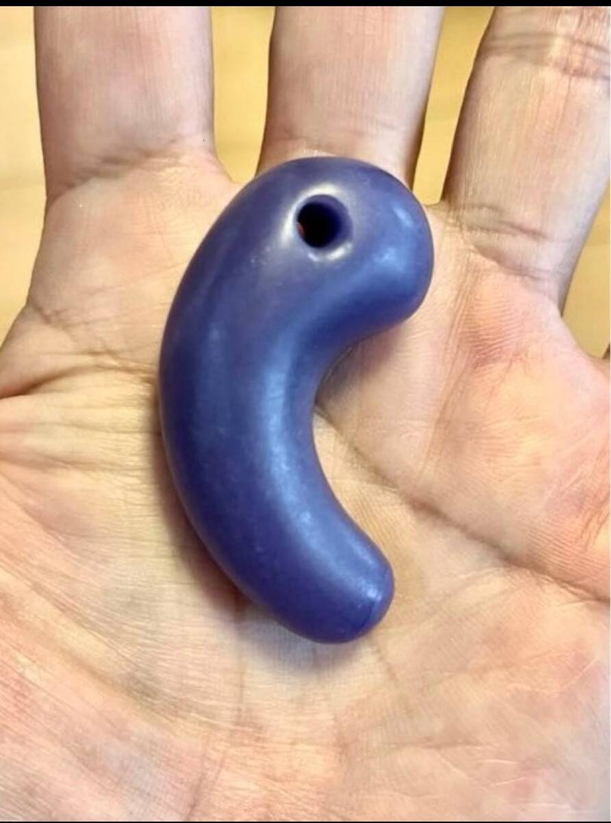 伝奈良県斑鳩町古墳群出土の勾玉です。 入手時とても汚れていた為、流水で水洗いしました。 色彩はラベンダー色よりも大変濃く、古色味の強い紫翡翠勾玉です。写真では光源が弱いので分かりにくいですが透明感もあり、均一にとても綺麗なスミレ色を呈しております。 大きさも、長さ4.9cm 厚さ1.6cmと大きい勾玉です。 ここまで色味が濃く均一な透明感があり、かつ大きな勾玉は希少ではないでしょうか。 素人収集品の為、詳しく分からない事が多いと思いますがご質問等ありましたらどうぞ教えて下さい。 コレクション整理の為、出品いたします。