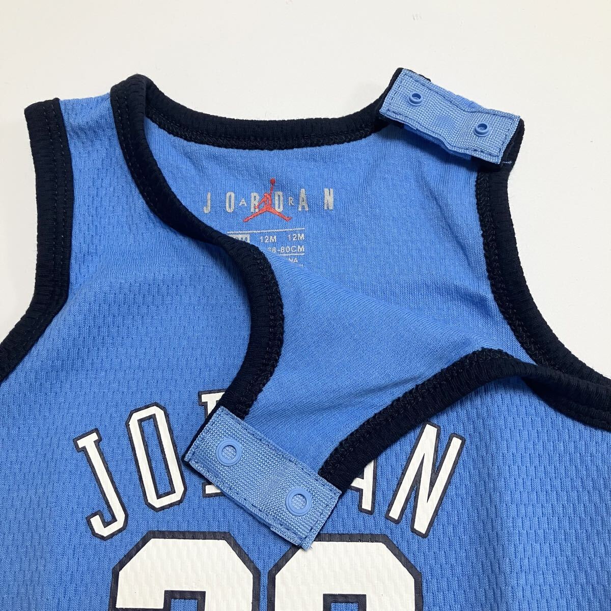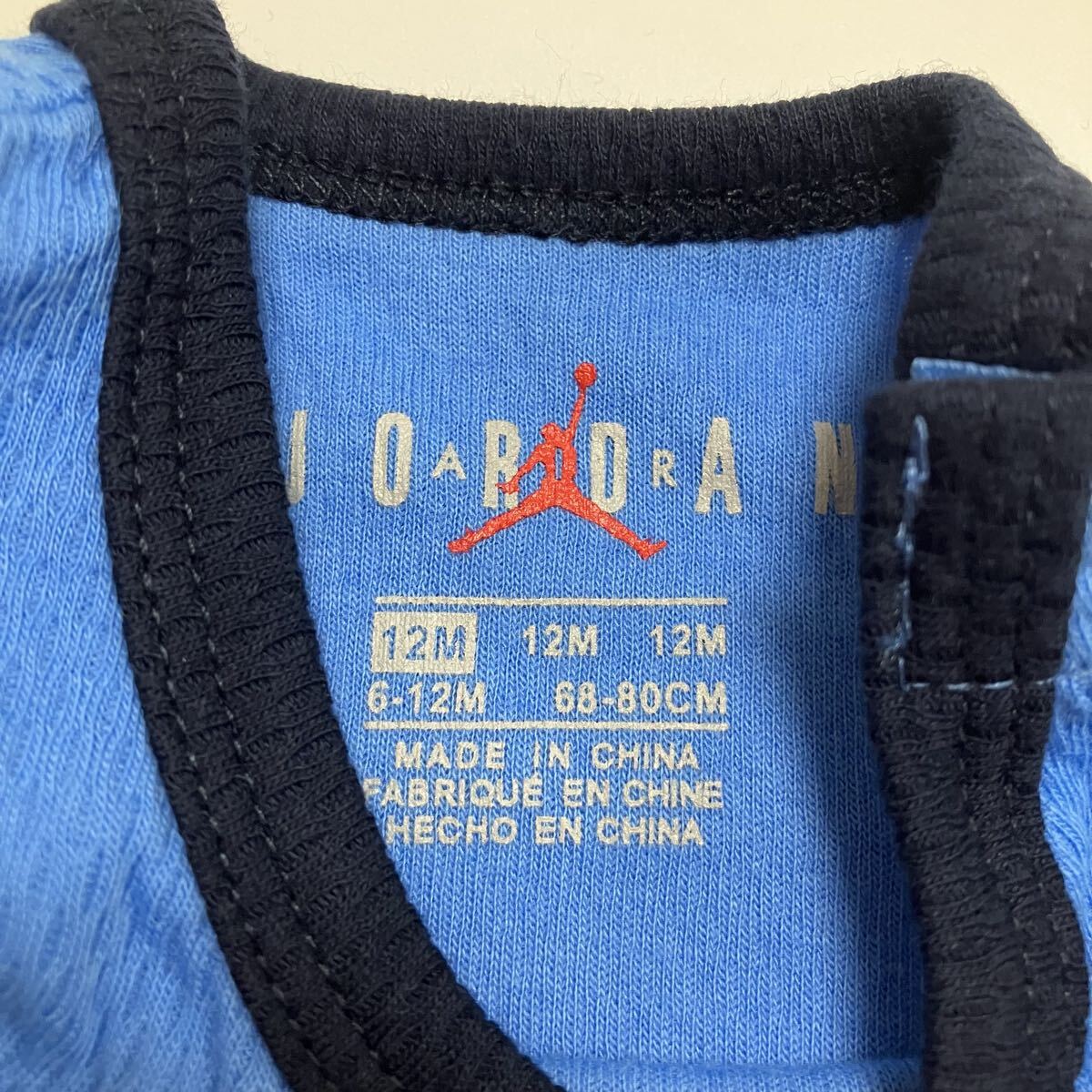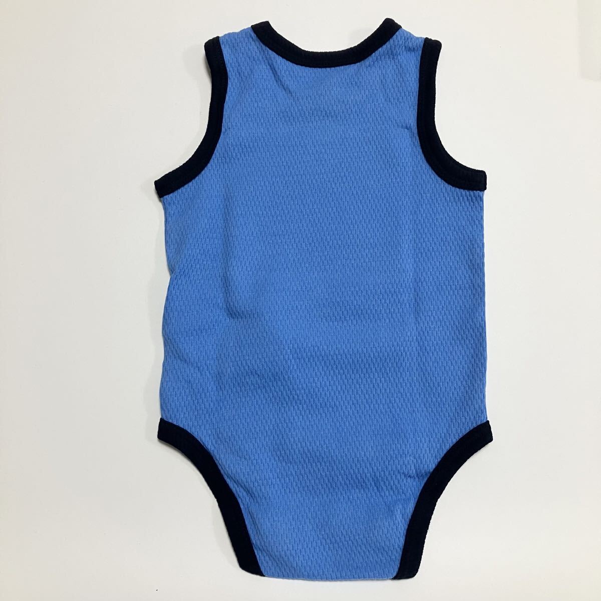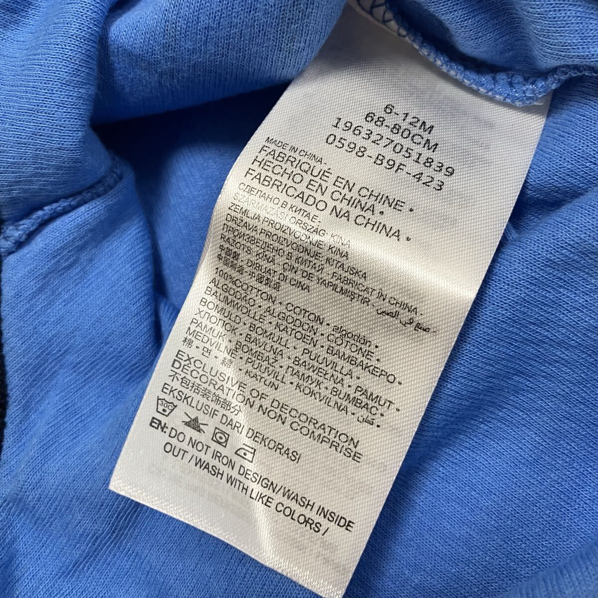 ブランドロゴがアクセントのロンパースとヘアバンド、靴下の3点セット。着せ替えやおむつ替えをラクにしてくれる肩、股下スナップボタン付きです。