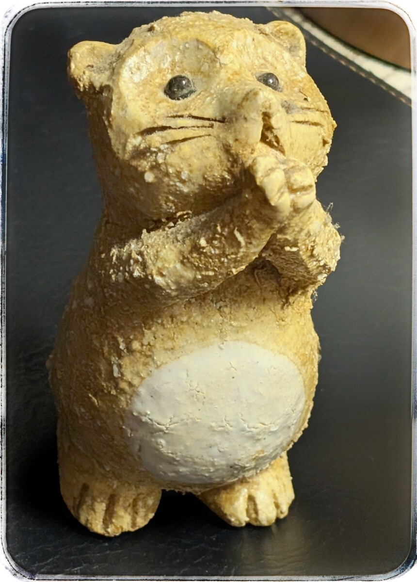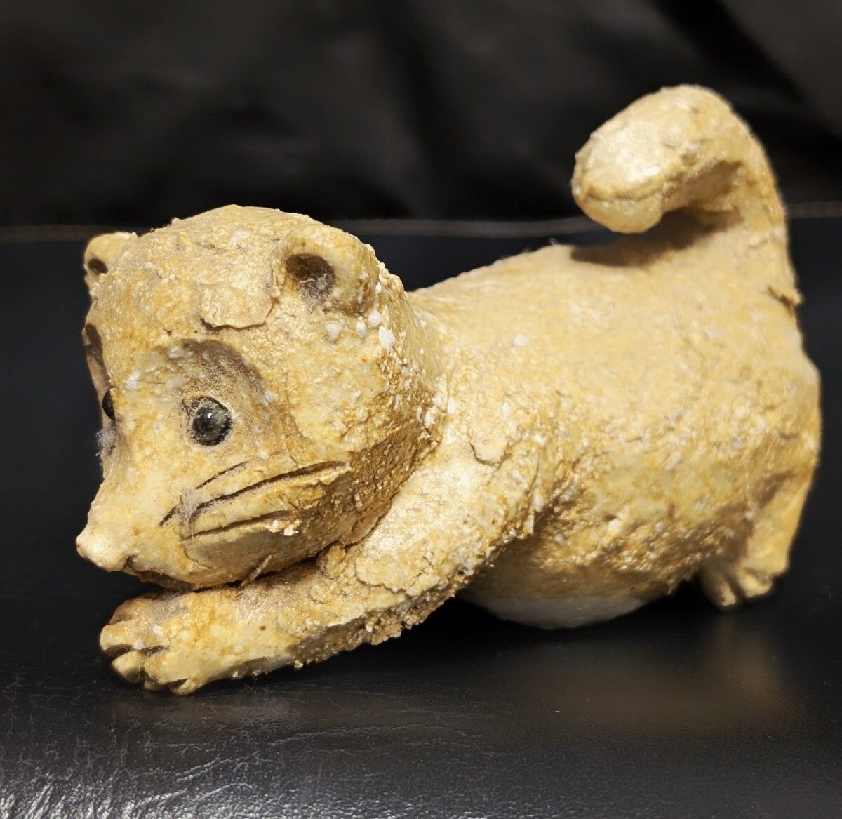 此方【昭和 ハンドメイド】一点物 ざらざら陶器の置物愛嬌たっぷりアニマル オーナメント 狸?イタチ?になります。