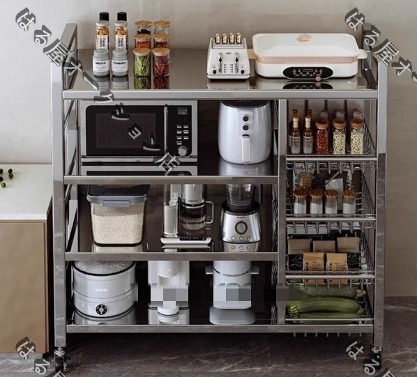 | 多層ステンレスキッチン野菜バスケット置物棚着地多層家庭用果物野菜収納多機能電子レンジ鍋棚 寸法:図のように 材質種類:201ステンレス鋼 *荷重約150斤 ラミネート調整可能 各階は調理器具の高低に応じて柔軟に調整でき、大物調理器の電気を恐れない 重厚な家電の雑物は自由に置いて、安定して崩れにくい 多元階層空間、厨房電気雑物はそれぞれその位置に設置されている 乱れを吹き飛ばす |