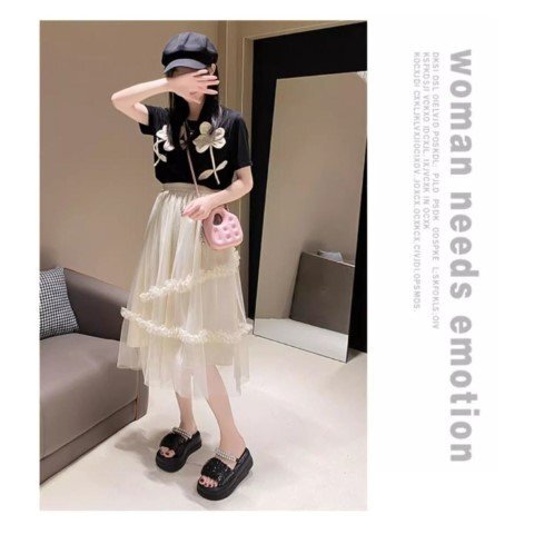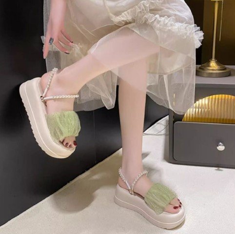 ・足元をパッと華やかに見せるキラキラチュールサンダル。