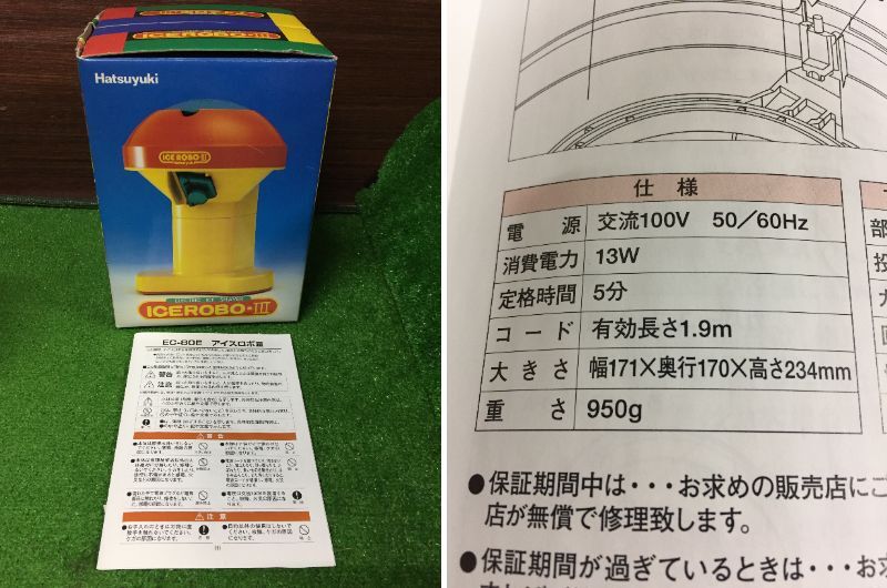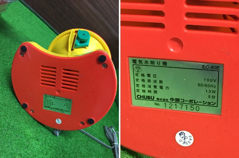 中部コーポレーション 電気氷削り機 アイスロボ ICE ROBO Hatsuyuki EC-80E キッチン家電 箱入り 26-9