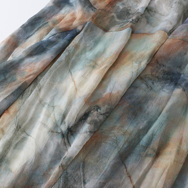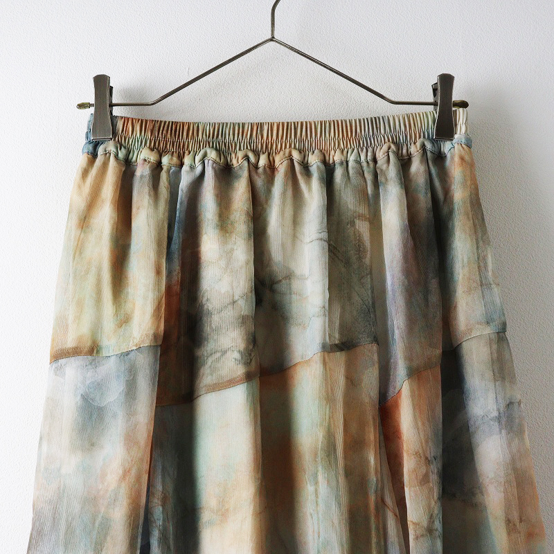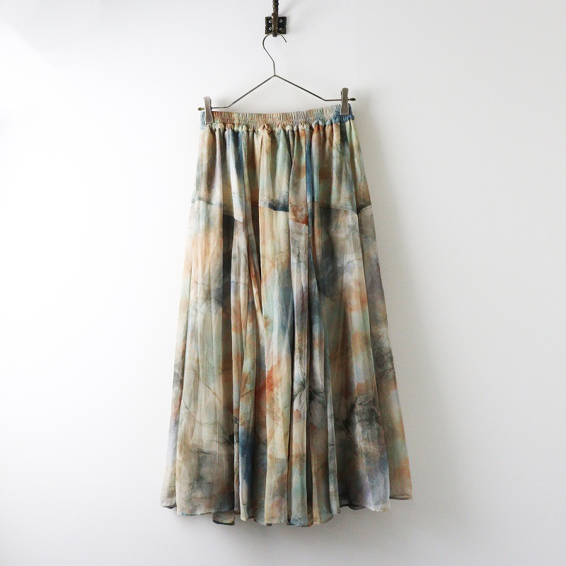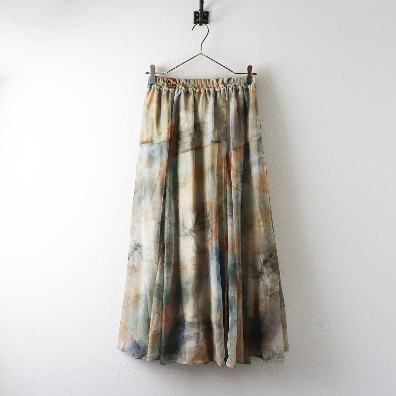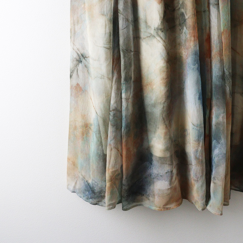 未使用 保管品 ジーナシス JEANASIS ニュアンスプリントフレアスカート S グレー系┃総柄 チュール ロング丈【2400014696189】