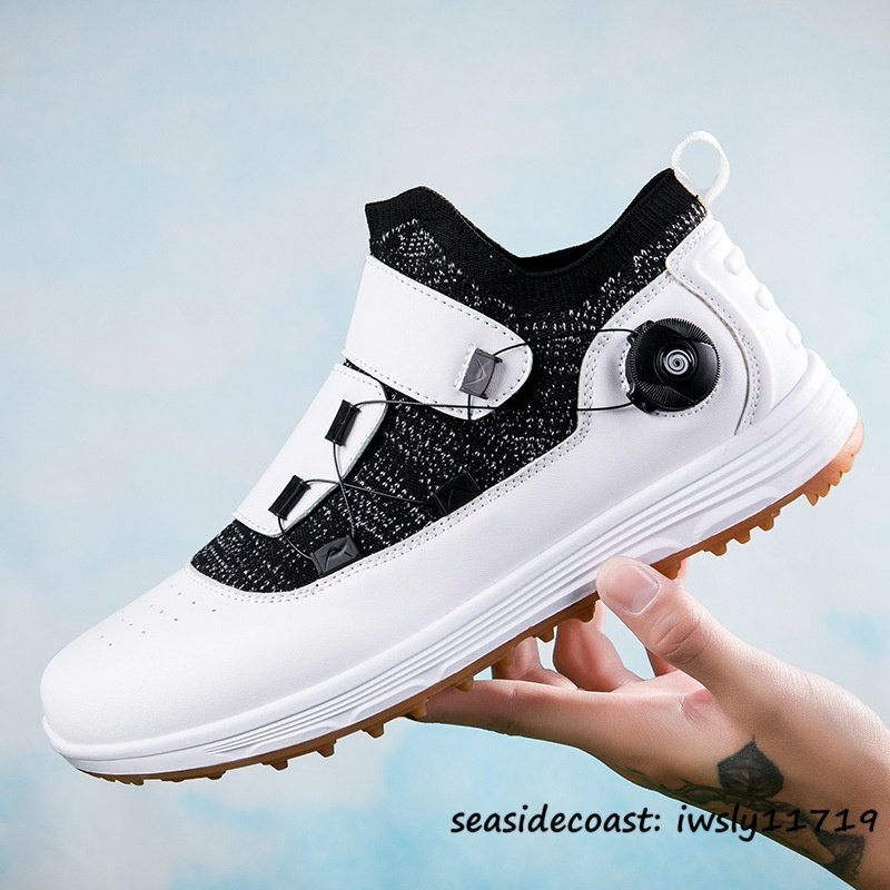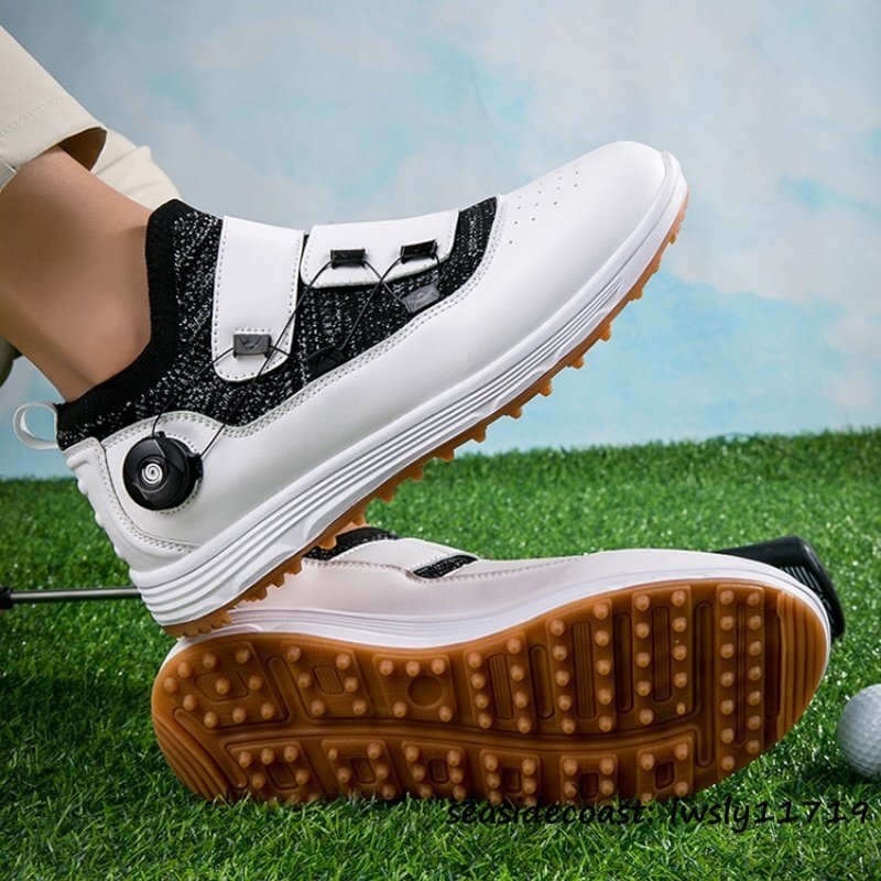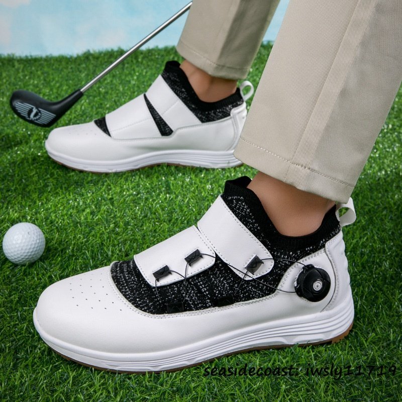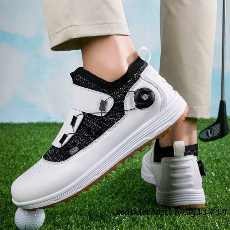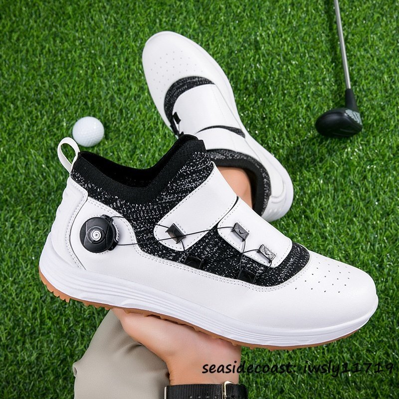高級品 ゴルフシューズ 強いグリップ 新品ダイヤル式 運動靴 フィット感 軽量スポーツシューズ 弾力性 通気性 防滑 ホワイト 27.0cm