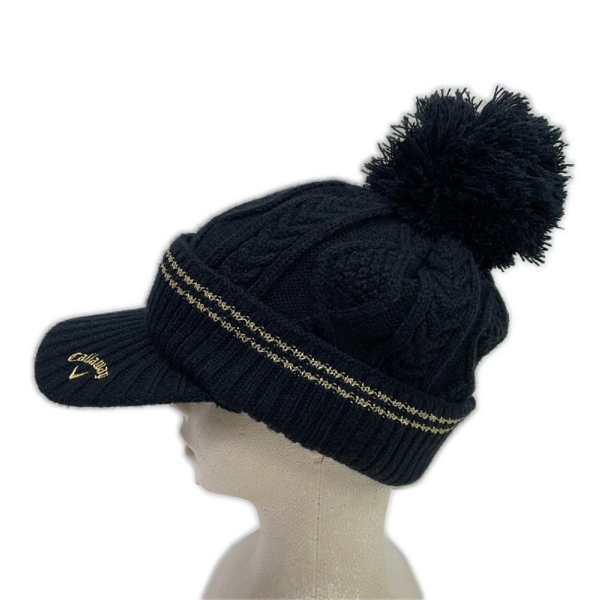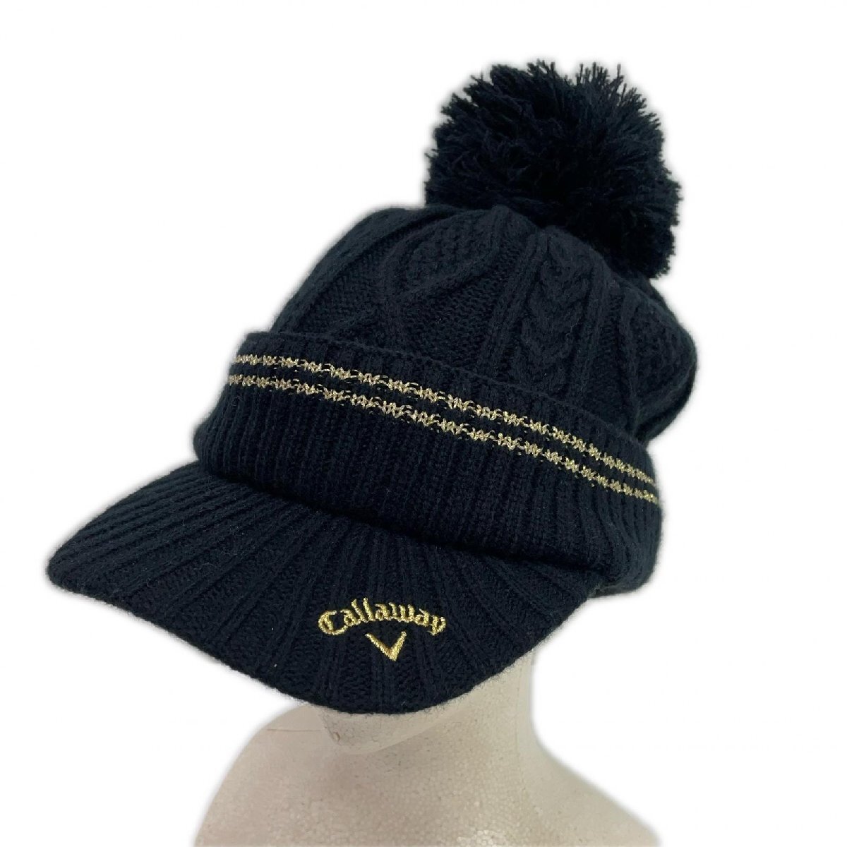 coco 中古 キャロウェイ Callaway つば付ニット帽 フリー ブラック 黒 ボンボンニットキャップ レターパックプラス発送可 K017438