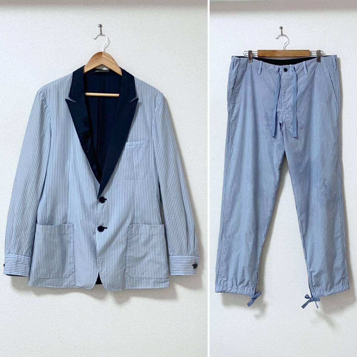 Yohji Yamamoto Pour Homme ストライプ コットン セットアップ ジャケット パンツ 水色