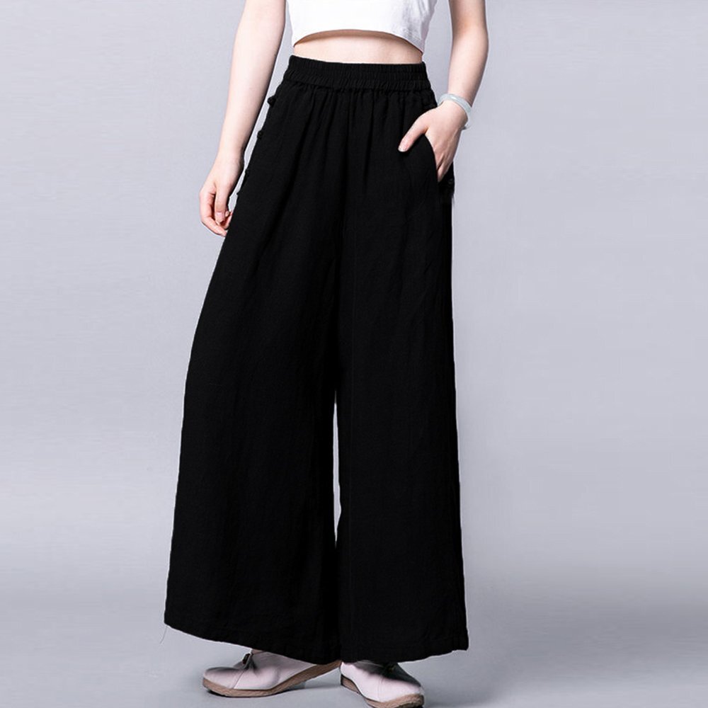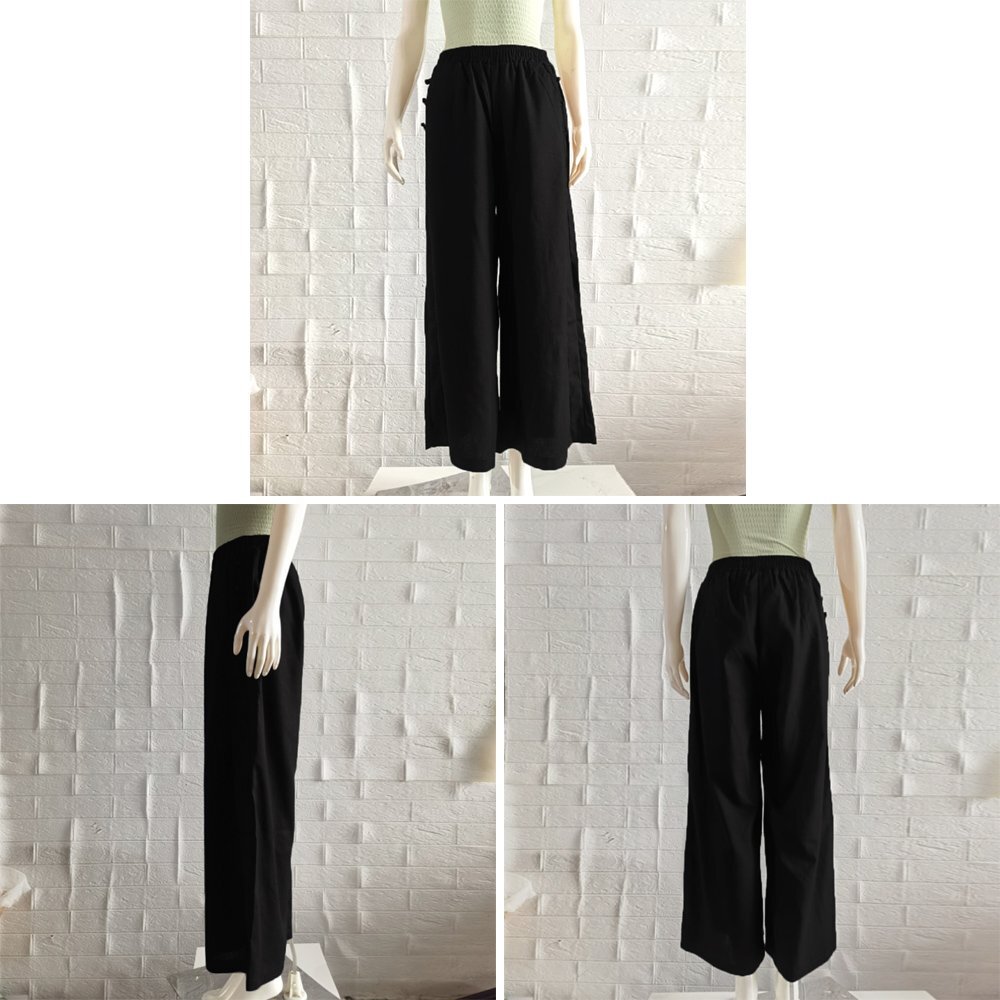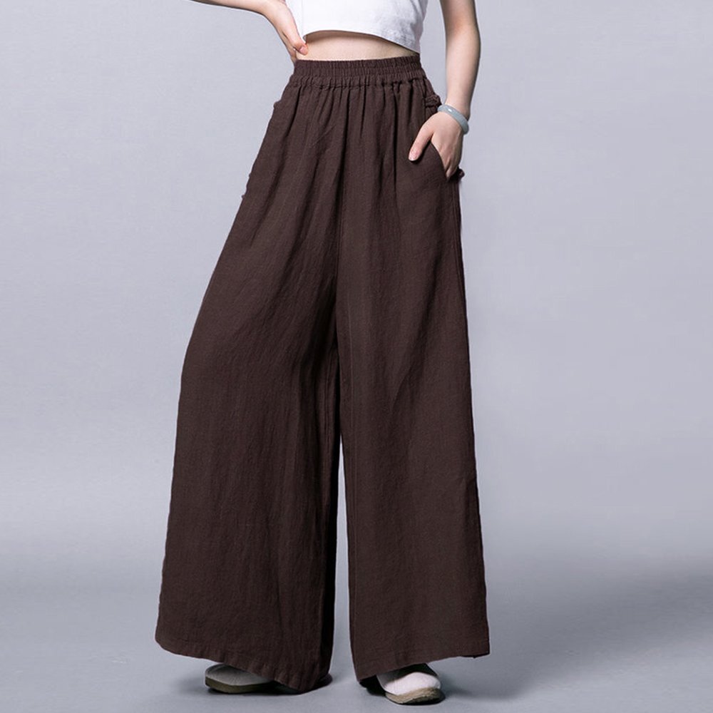 ナチュラルな風合いの綿麻素材で、清涼感のある抜け感たっぷりのワイドパンツ