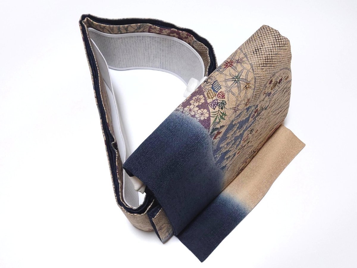 手間のかかる帯結びがいらない、やまと独自の帯加工です。 メッシュベルトとマジックテープで簡単。 手間のかかる帯結びがあっという間に完成します。 お太鼓に縫い止めがありますので、背負うだけの簡単装着ですので 初心者でも簡単に美しい帯結びができます。 従来の帯結びに比べて、短時間で装着が可能です。 忙しい日常や急な外出時にも便利です。 手軽なお着付けのお供にぜひご活用くださいませ。 ※撮影時部屋の照明によって画像の色に若干の差がございます。 色味に差がございますことをご了承のうえご検討下さいませ。 ※個人保管品のため記載のない僅かな難がある場合がございます。 そのような理由でのキャンセルはお受けできませんので、ご了承の上ご検討お願いいたします。 |
