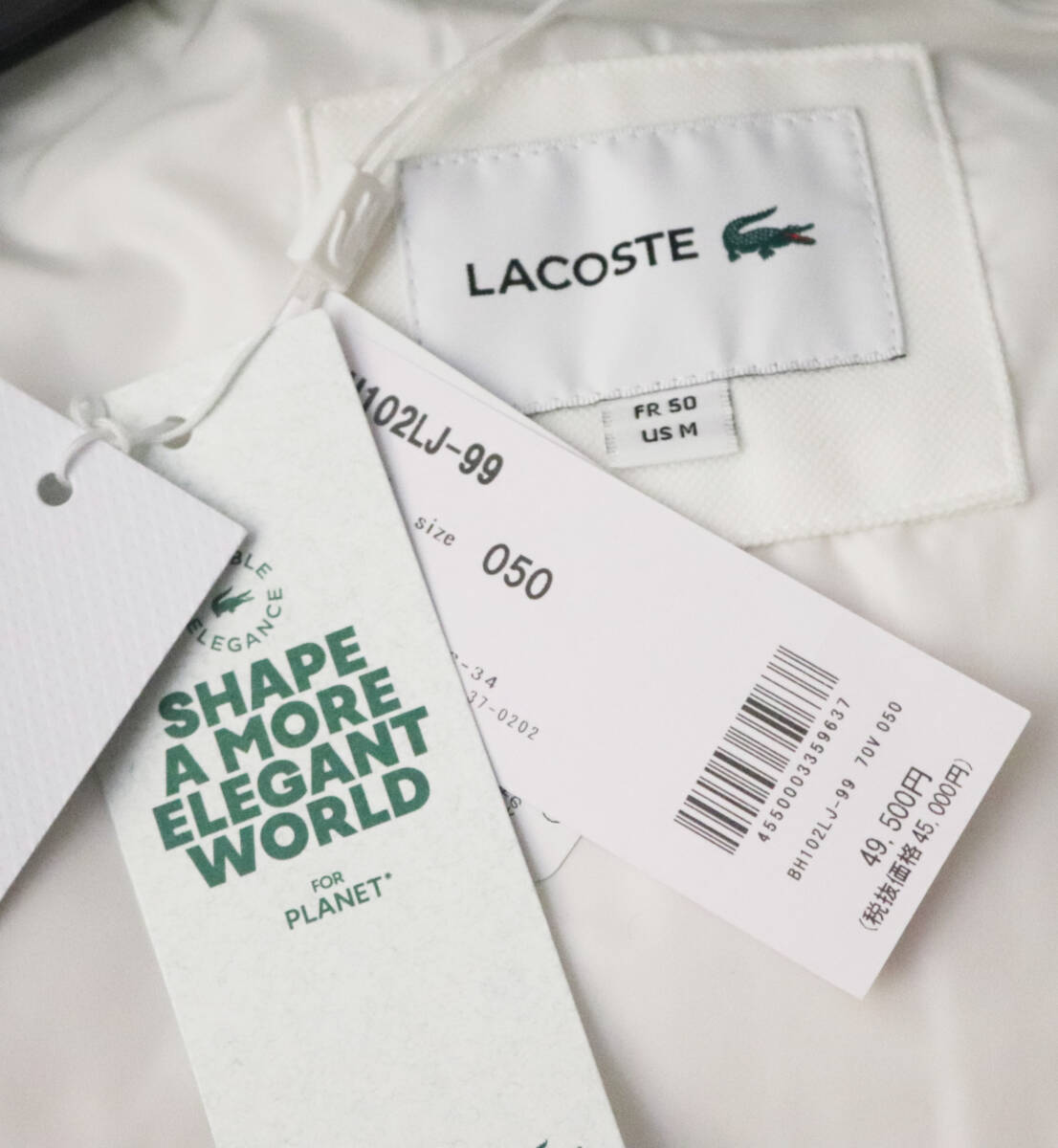 | 49,500円新品タグ付き【LACOSTE ラコステ】人気完売 ラコステ定番 ピケダウンジャケット 白 50 v7761-1409 |