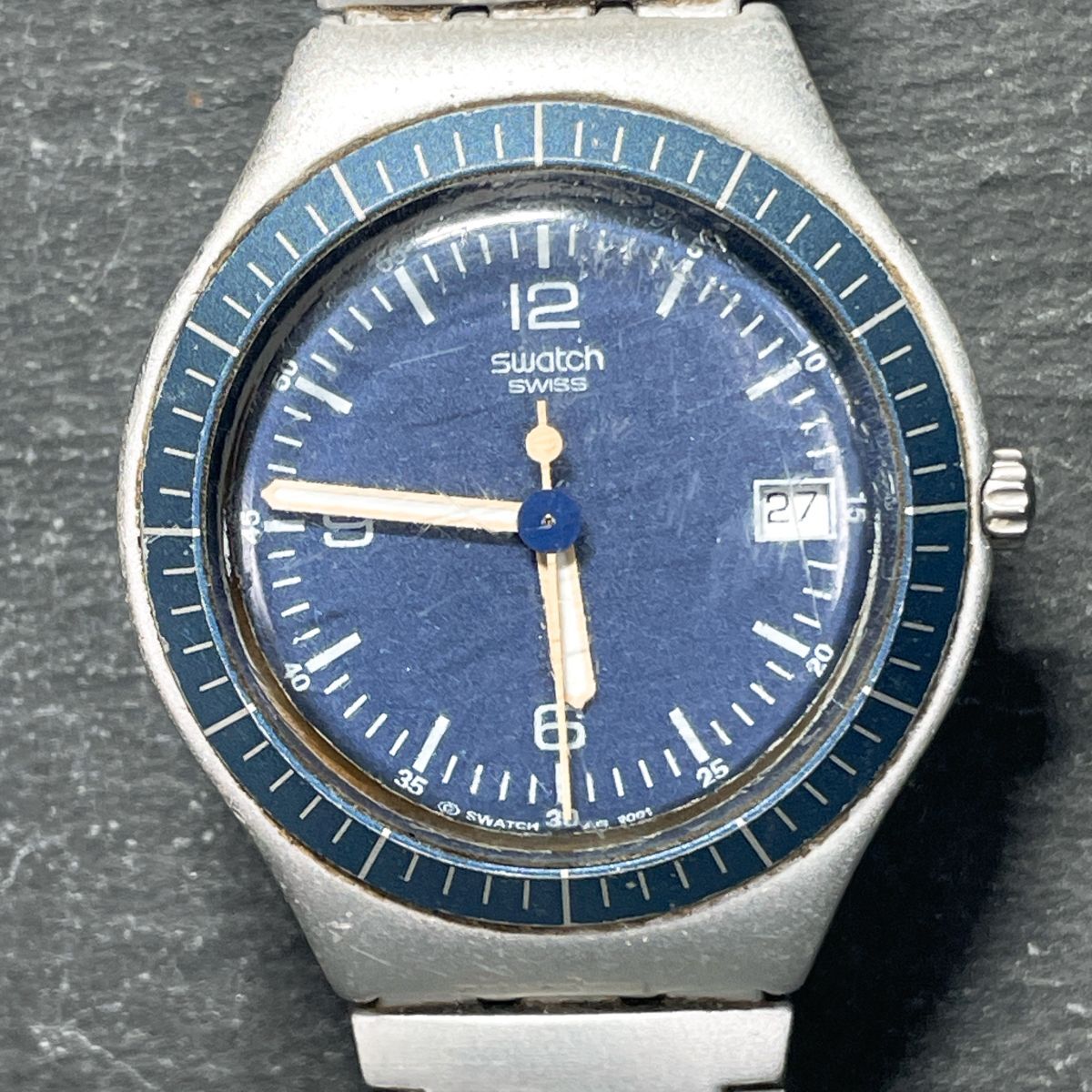 Swatch スウォッチ IRONY アイロニー AG2001 腕時計 アナログ クオーツ 3針 カレンダー ブルー文字盤 メタルバンド 新品電池交換済み