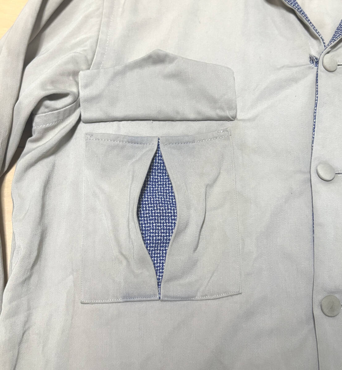 衿切替し、フロントポケットプリーツ内側50sに見られるハウンドトゥース柄生地