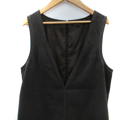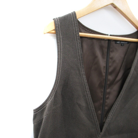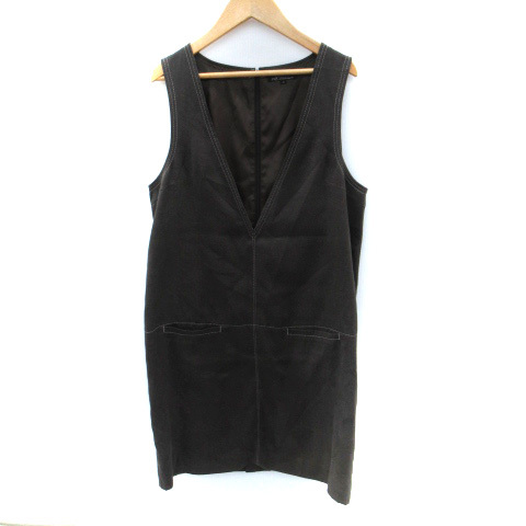 23区 オンワード樫山 ジャンパースカート ワンピース ひざ丈 Vネック スエード調 40 L 茶 ブラウン /SM29 レディース