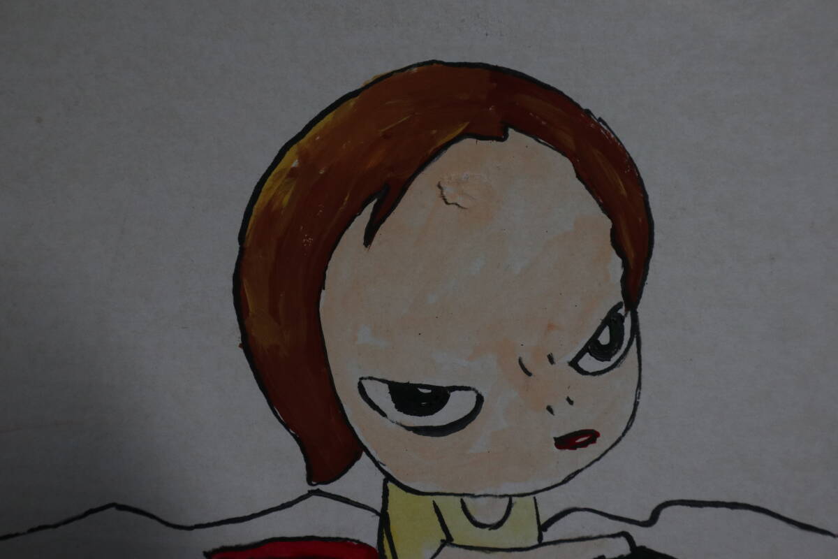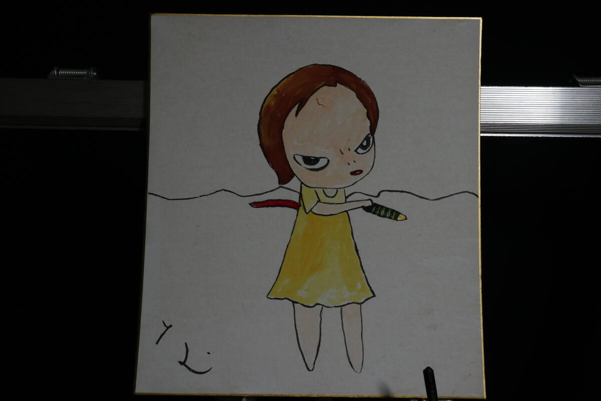 【摸写】奈良美智〇色紙●水彩画〇少女〇画寸 縦26cm×幅23cm