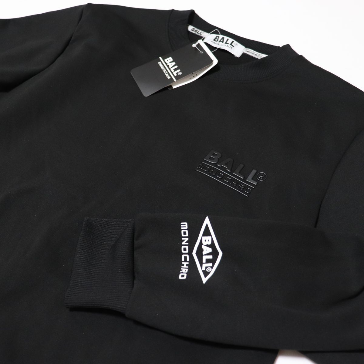 ★ボール BALL 新品 メンズ イタリア発人気ブランド 毛玉になりにくい 裏起毛 スウェット トレーナー 黒 M [64125-99-M]一 三 壱★QWER