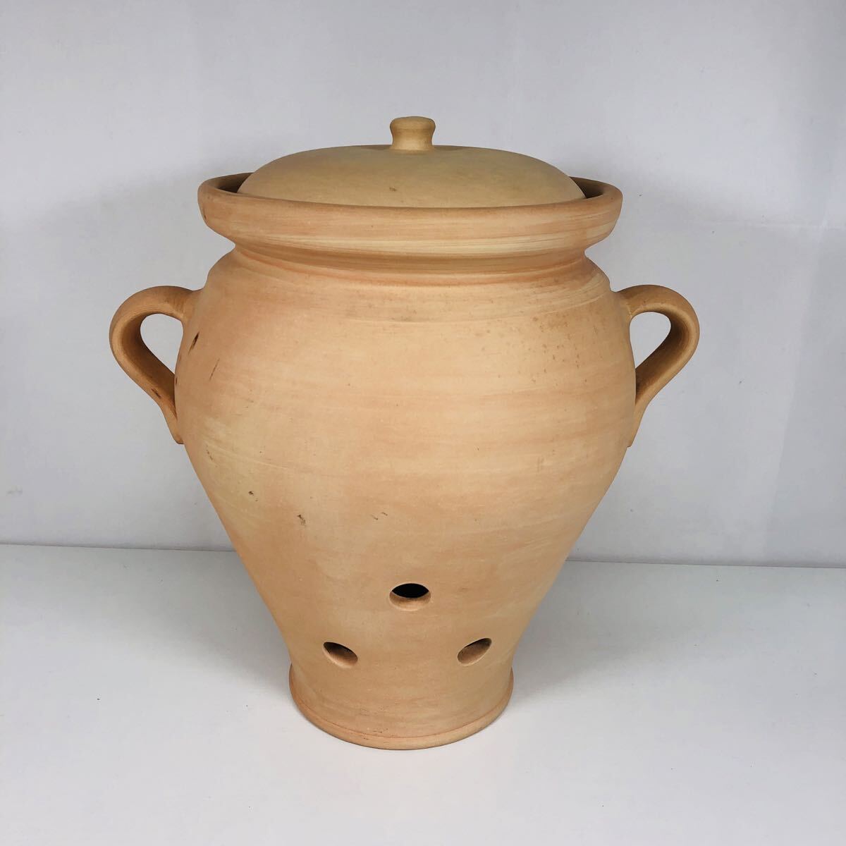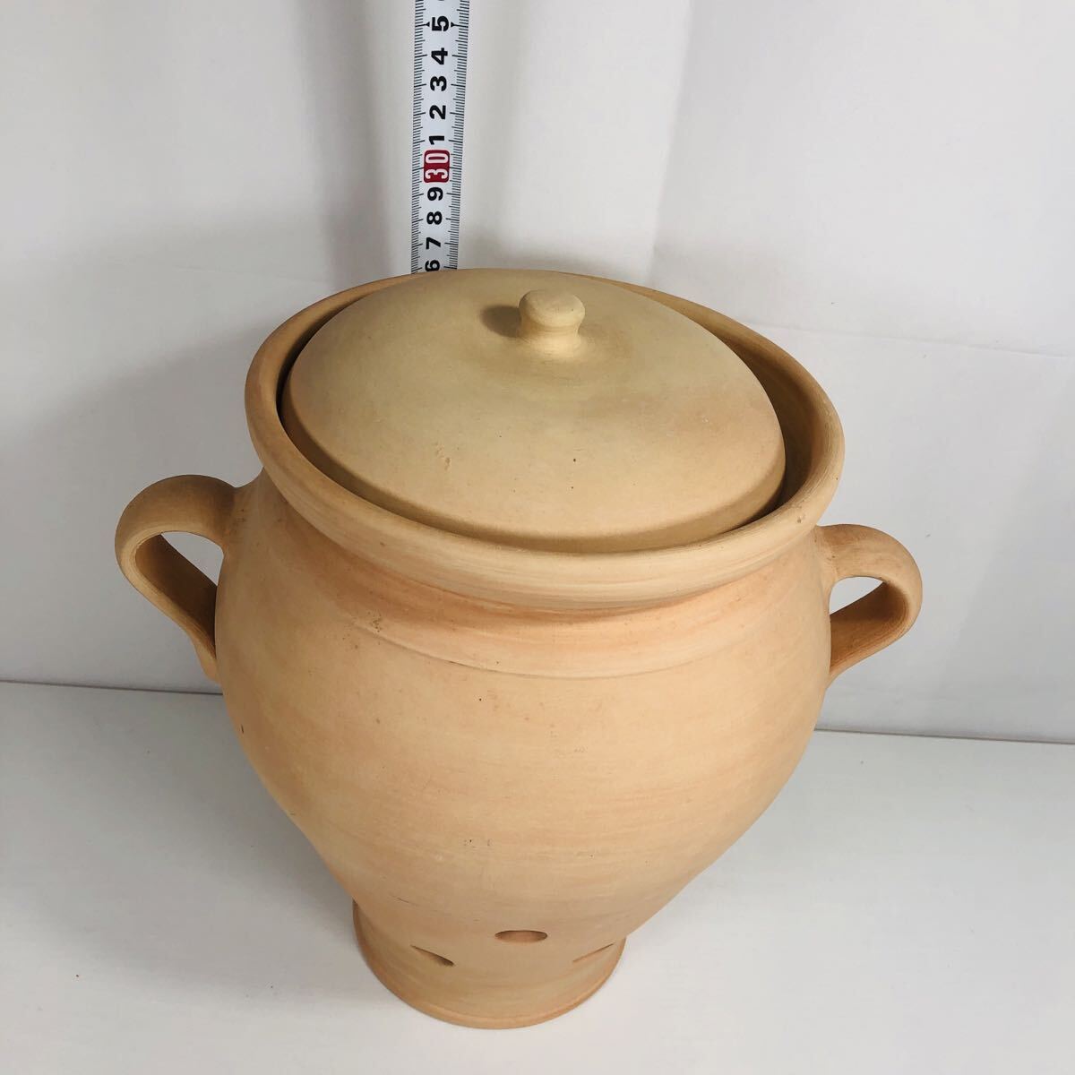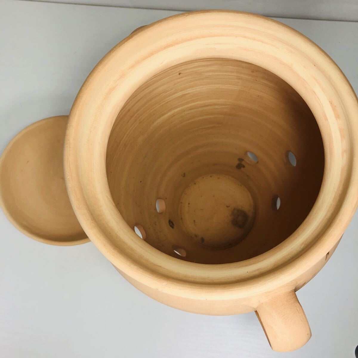 中古保管品 汚れあり 素焼き 壺 鉢 蓋付き 穴空き 野菜保存などに
