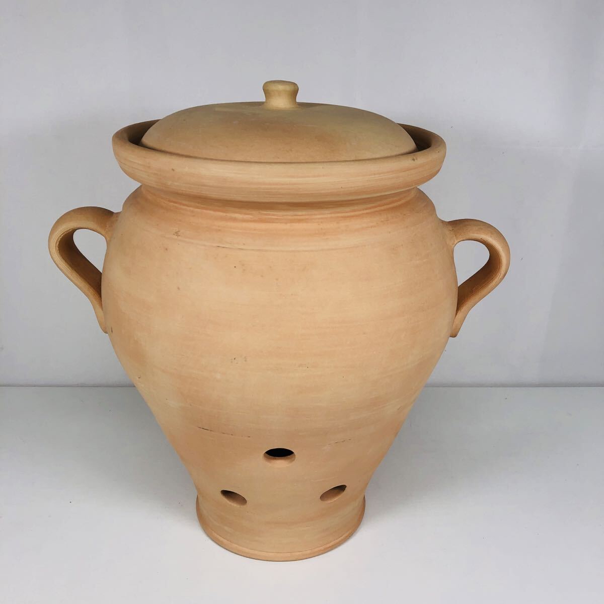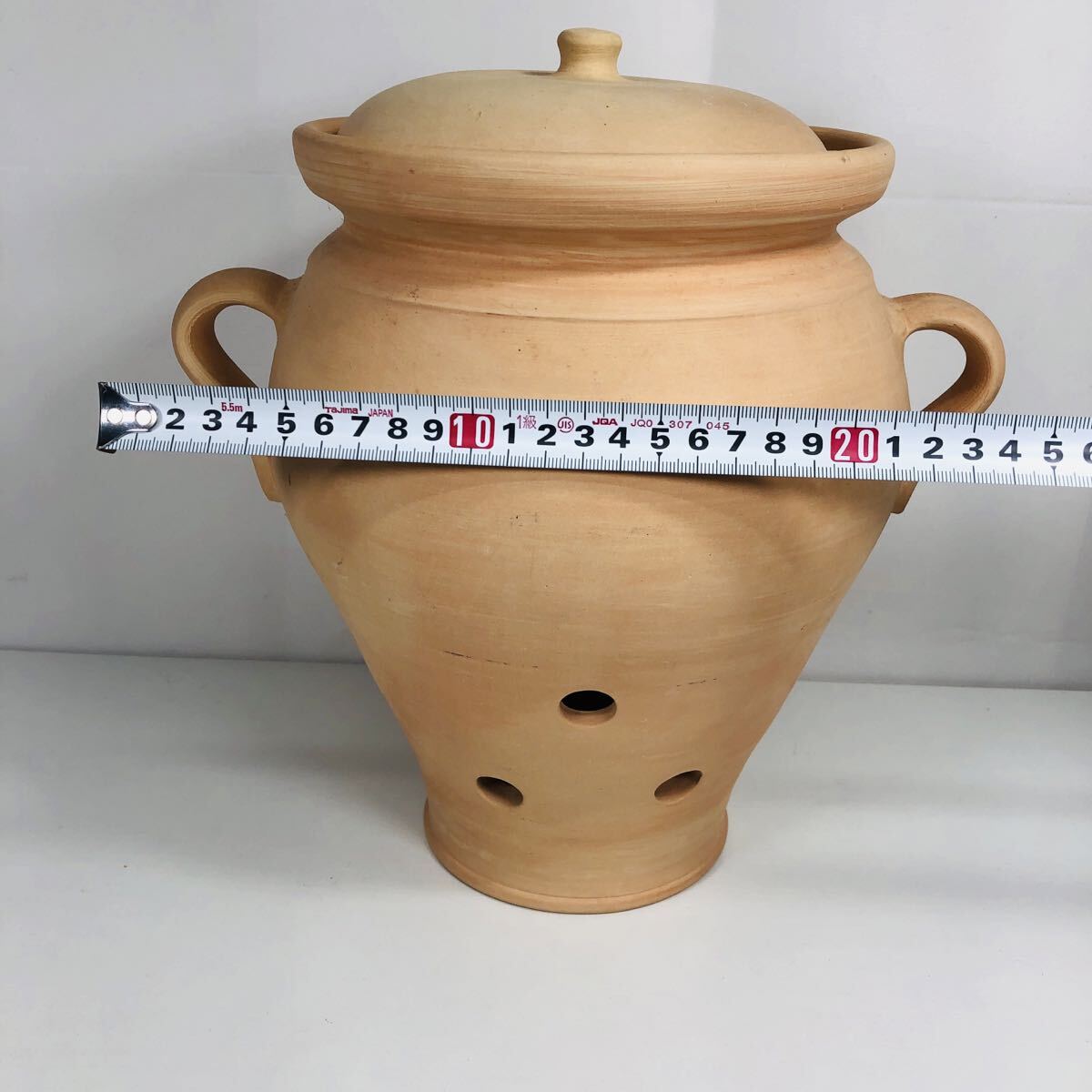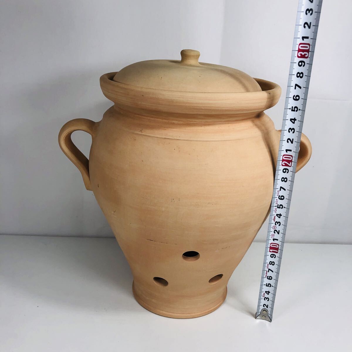 中古保管品 汚れあり 素焼き 壺 鉢 蓋付き 穴空き 保存容器 用途不明