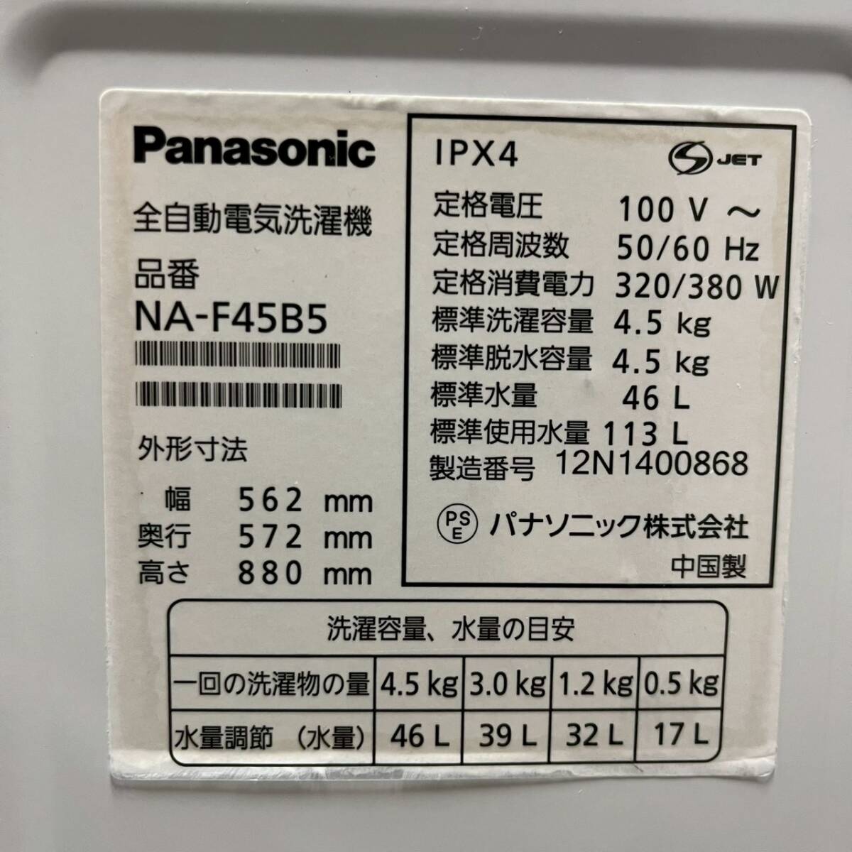 Panasonic 縦型洗濯機 NA-F45B5 4.5kg 2012年製 動作確認済 全自動電気洗濯機 生活家電 洗濯機 パナソニック ホワイト Y2431