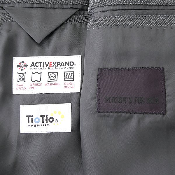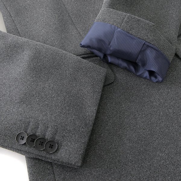 ※ハンガーは付属いたしません※ YA5サイズ(やや細身体型のMサイズ相当) 胸囲90 胴囲76 身長170 ※写真は別サイズを使用している場合がございます※ ※商品に記載されたサイズ・寸法です※ 【ジャケット】 肩幅42cm 身幅49cm 袖丈60.5cm 着丈69cm 【スラックス】 ウエスト78cm(内回り1周) 股上25cm 股下91cm 裾幅17.2cm 腿幅27.5cm(股下10cm部分) 表地:ポリエステル100% 胴裏:ポリエステル100% 袖裏:ポリエステル100% 膝裏:ポリエステル100% グレー |