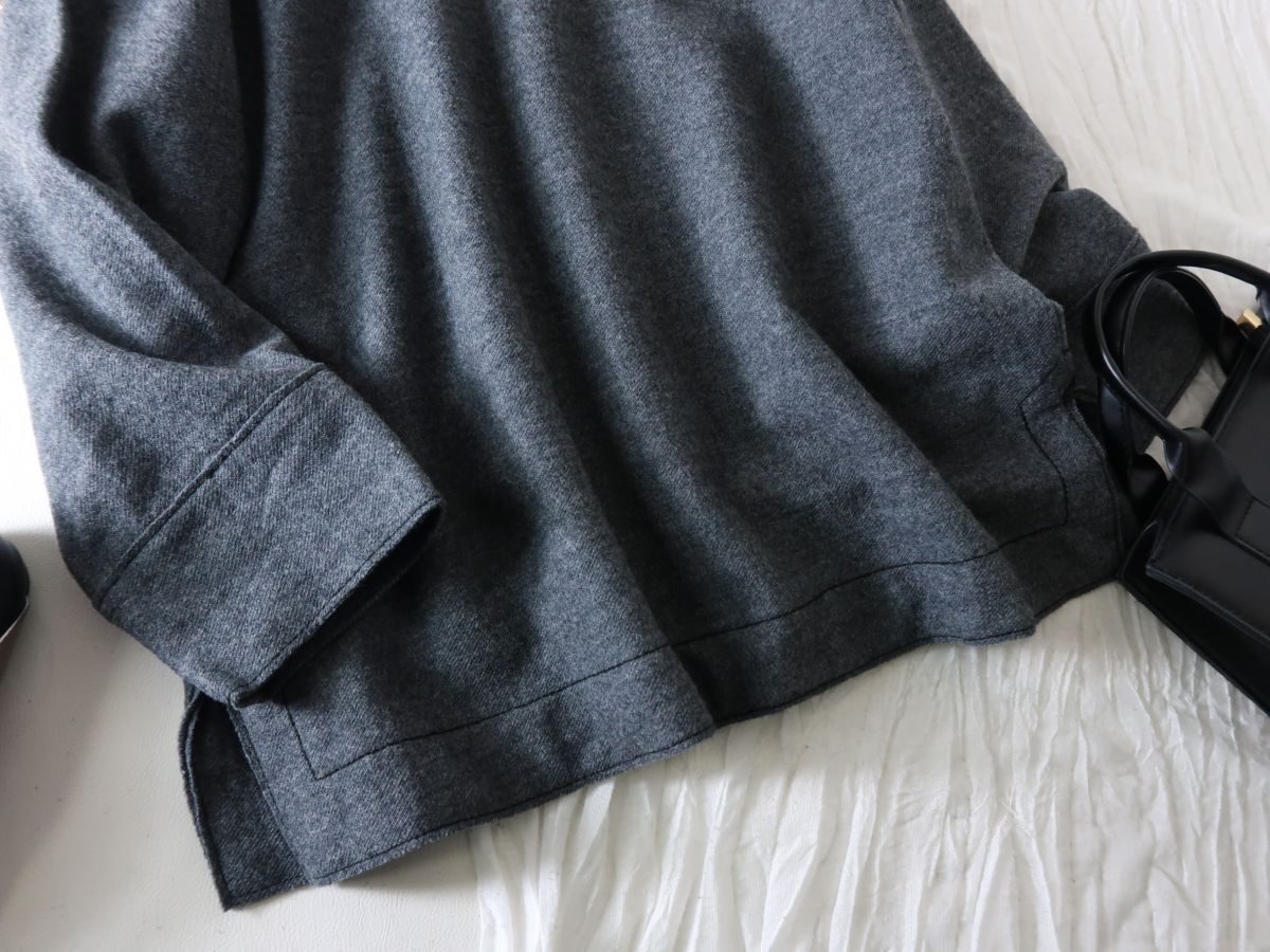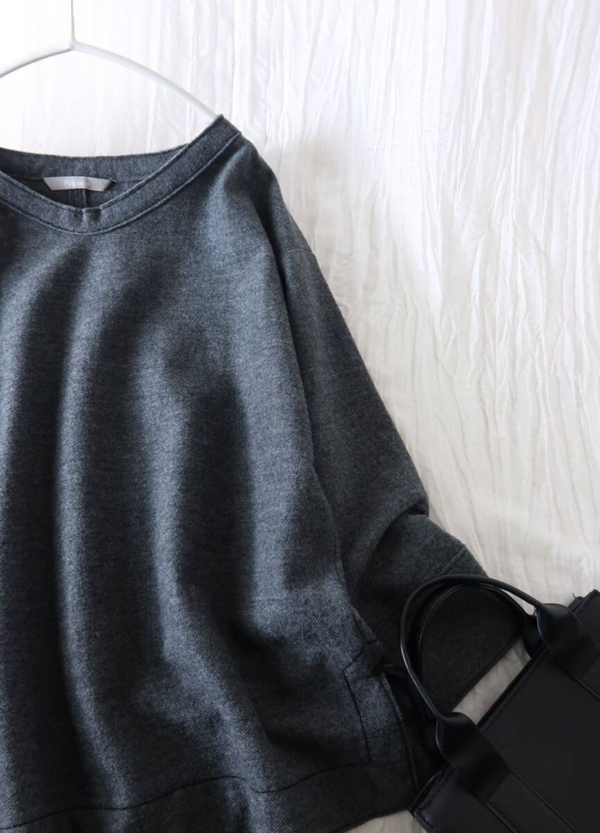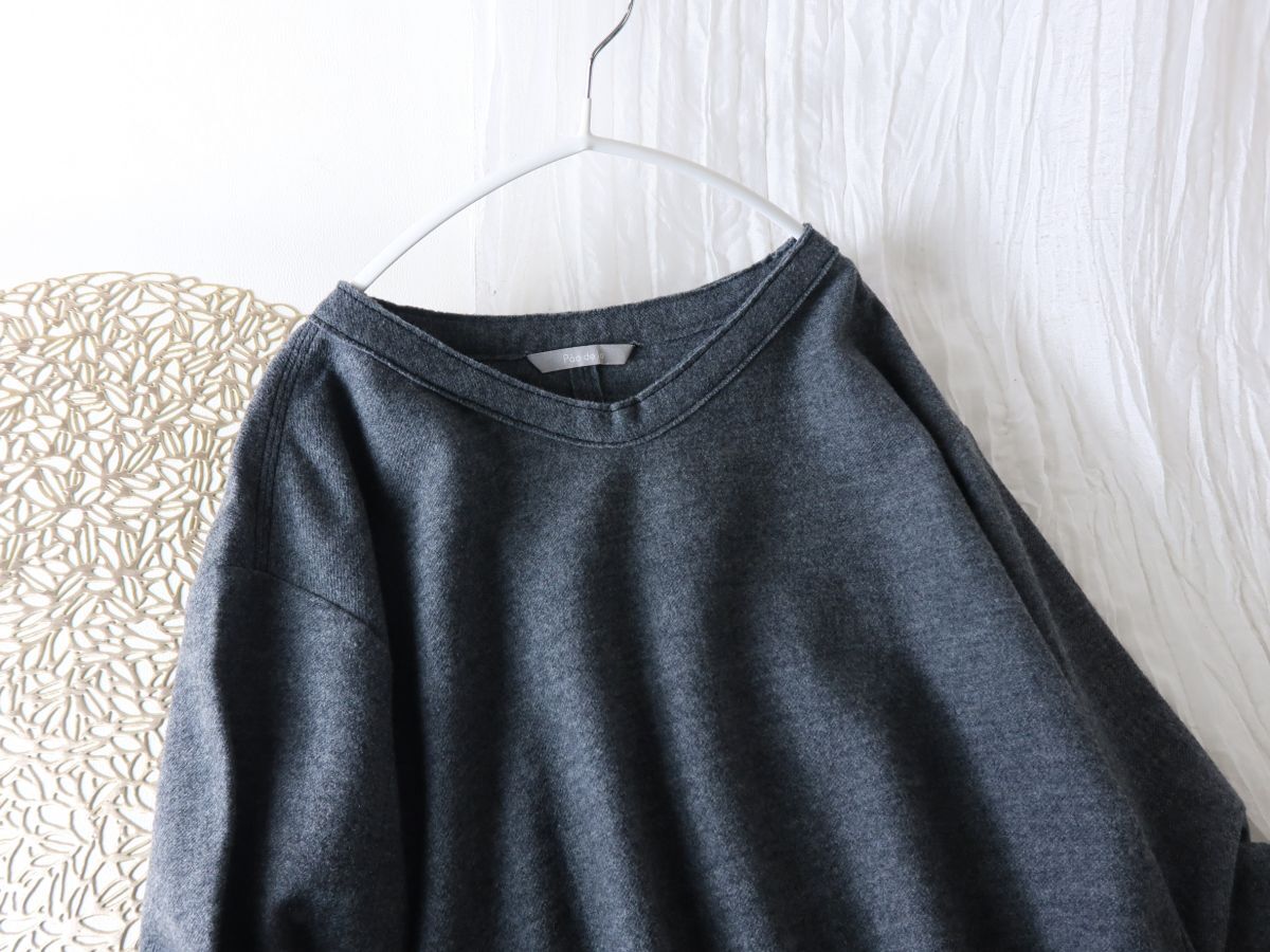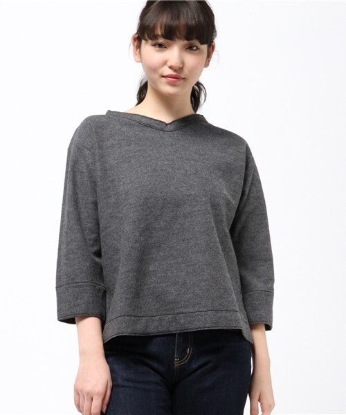 浅めの変形Vネックでアクセントを効かせたトップス。すぼまった袖もデザインポイント!シンプルながら立体的なフォルムでこだわりを持たせています。セミフィットのシルエットでストンと着用頂けます。