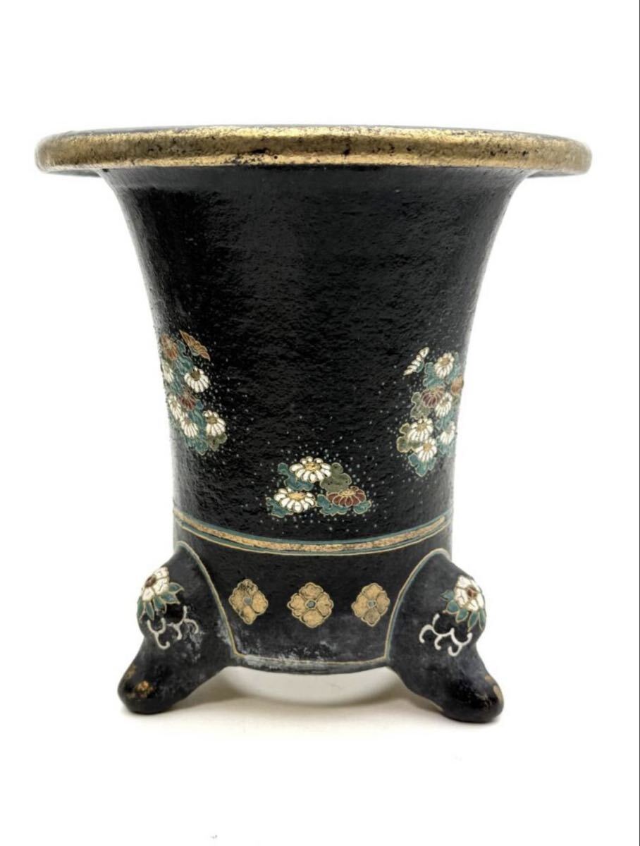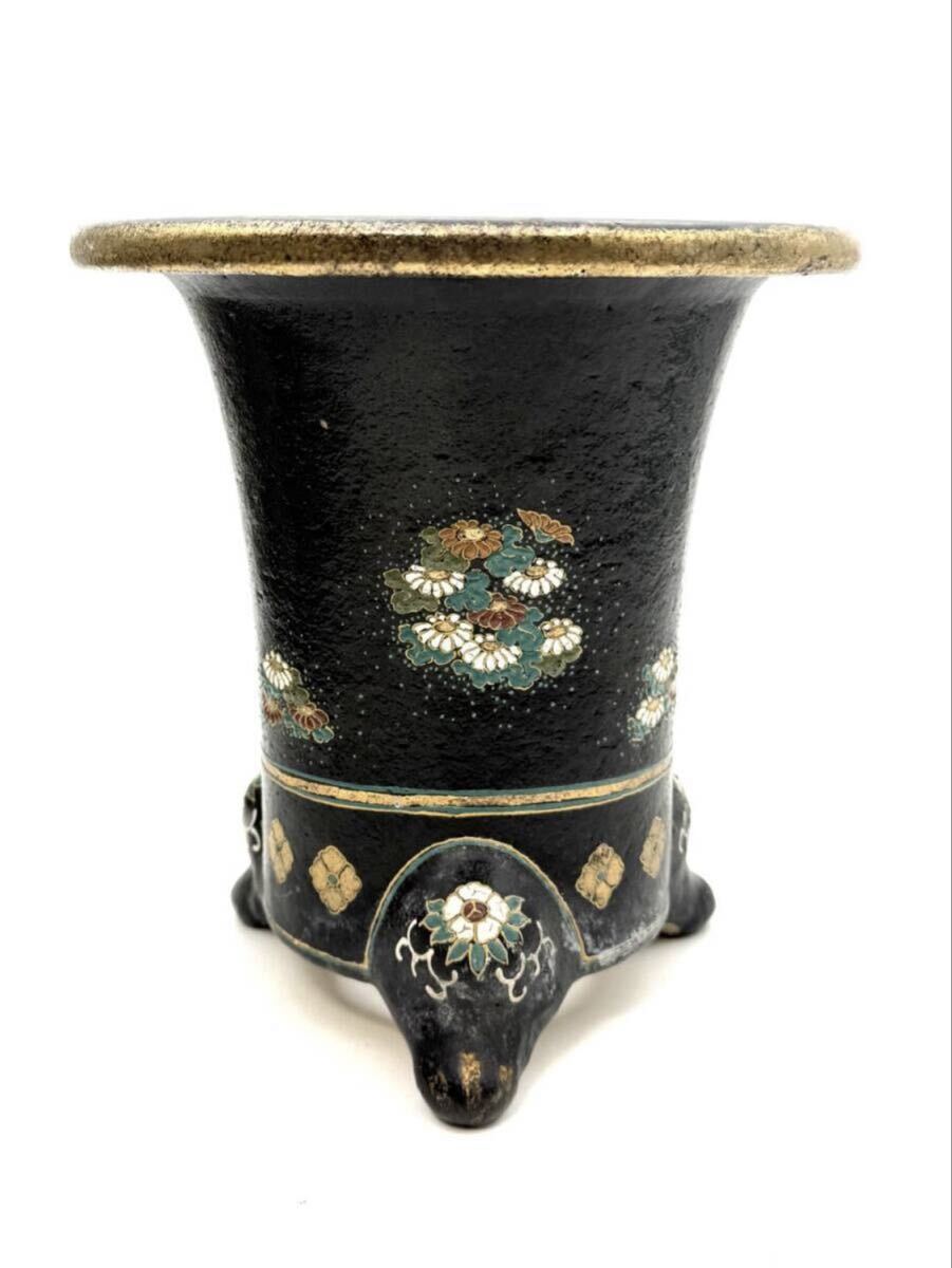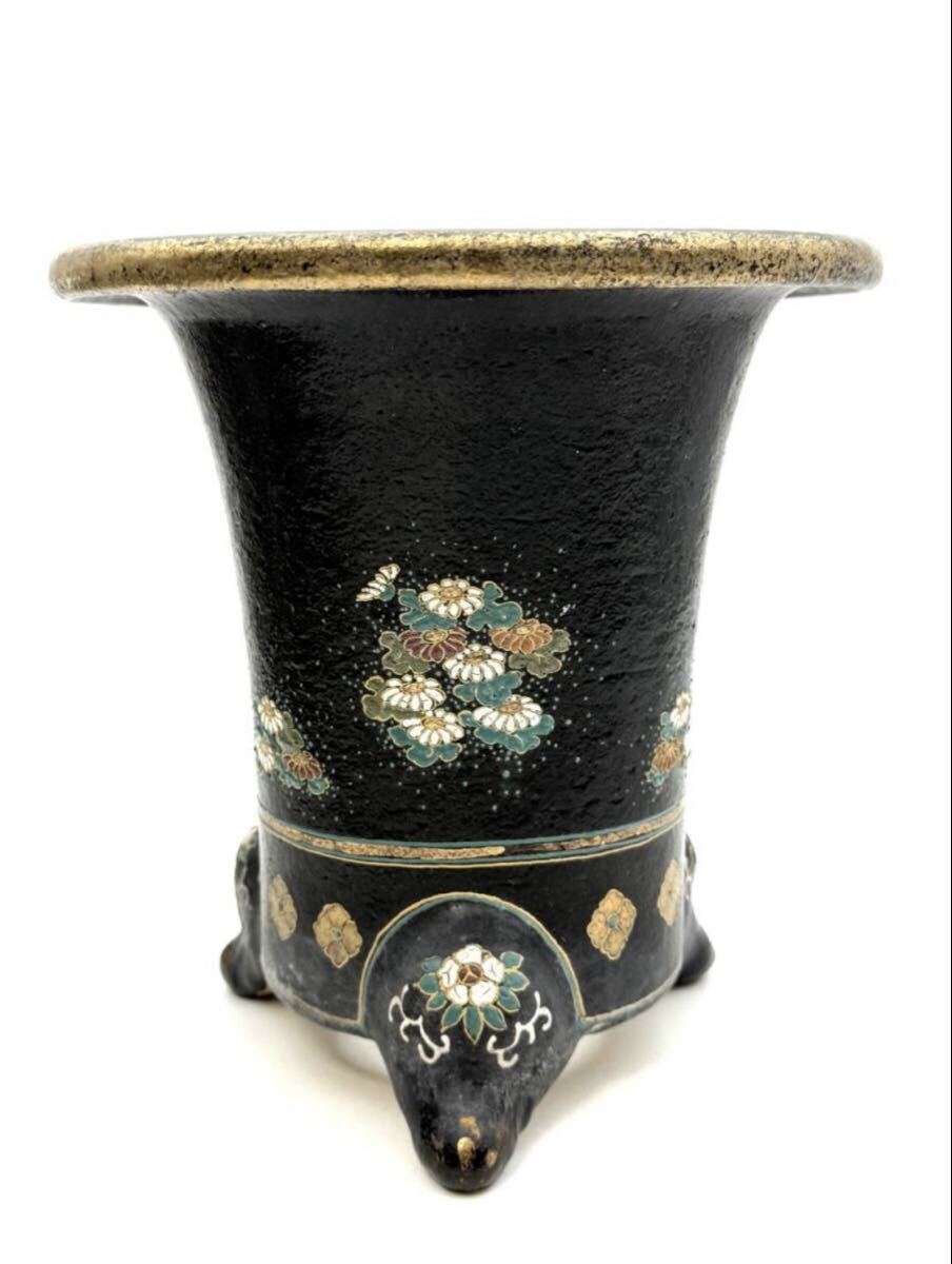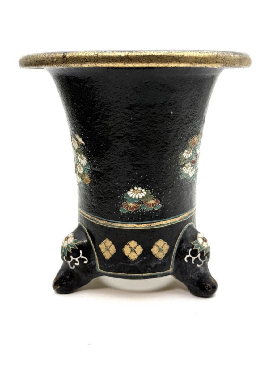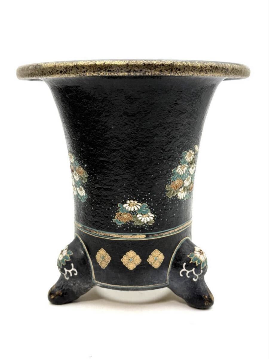 京楽焼 黒彩 金彩 花 富貴 蘭鉢 錦鉢 万年青 高さ22㎝ 横21.5㎝