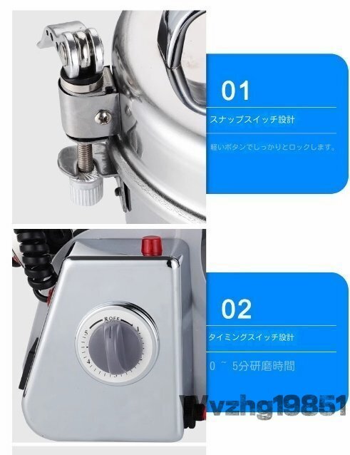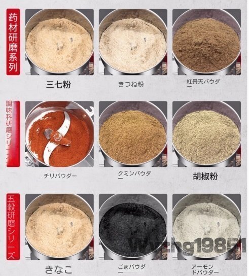 商品の詳細は以下表を参照ください。★状態:新品未使用回転数: 36000r/m粉砕容量:800g出力:最大1800W電圧:110Vサイズ(約):20*20*36cm重量(約):4.6kg粉砕後メッシュ:70-300支払方法☆Yahoo!かんたん決済☆※入金確認後5-7日以内に発送いたします。(土日祝日を除く)