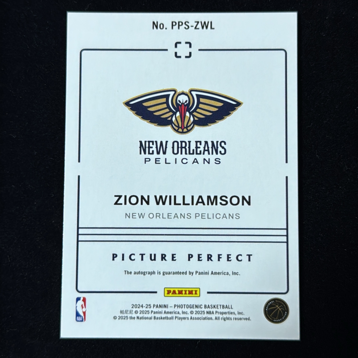 Zion Williamson ザイオン・ウィリアムソン Panini Photogenic 2024-25 /75 Auto 直筆 サイン Pelicans ペリカンズ