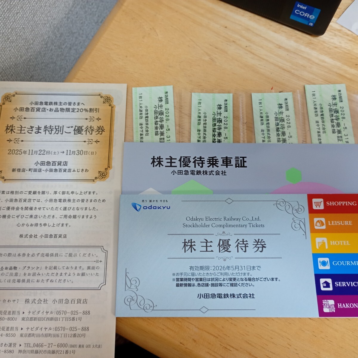 株主優待乗車証4枚、株主優待券一冊、株主さま特別ご優待券です。