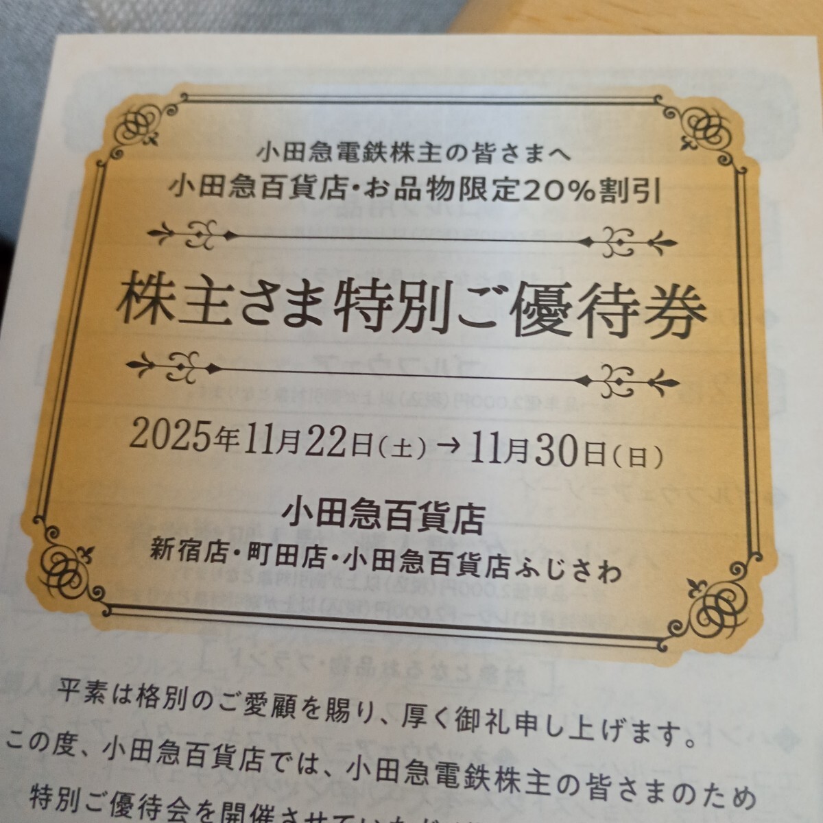 優待券一冊は2026年5月31日で、20%割引優待券は2025年11月22日〜2025年11月30日です。