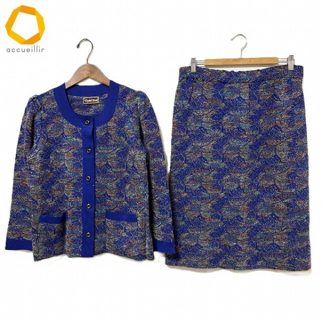#wnc サイトウトヨコ 斉藤都世子 セットアップ 青系 マルチ ニット カーディガン ゴールドラメ ツーピース レディース [976387]