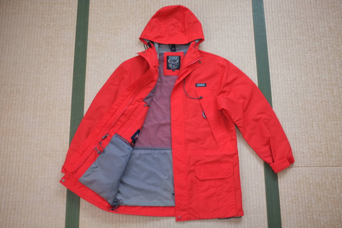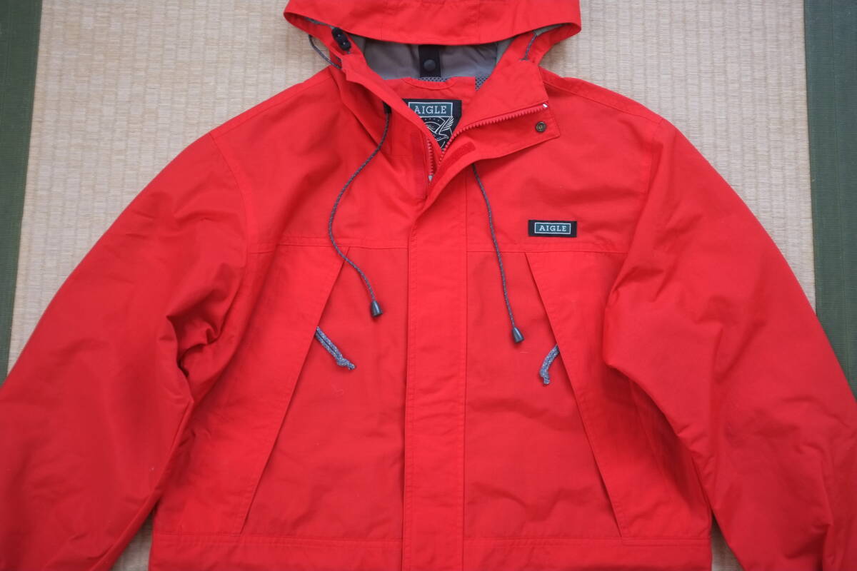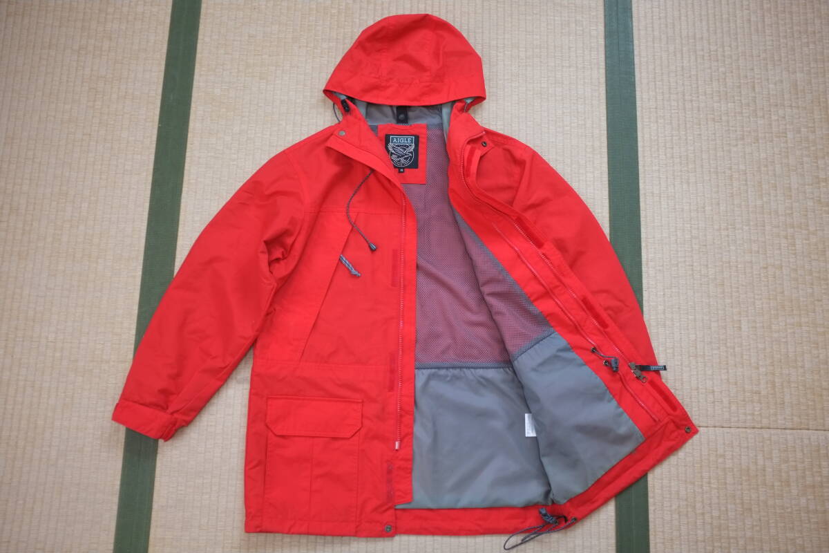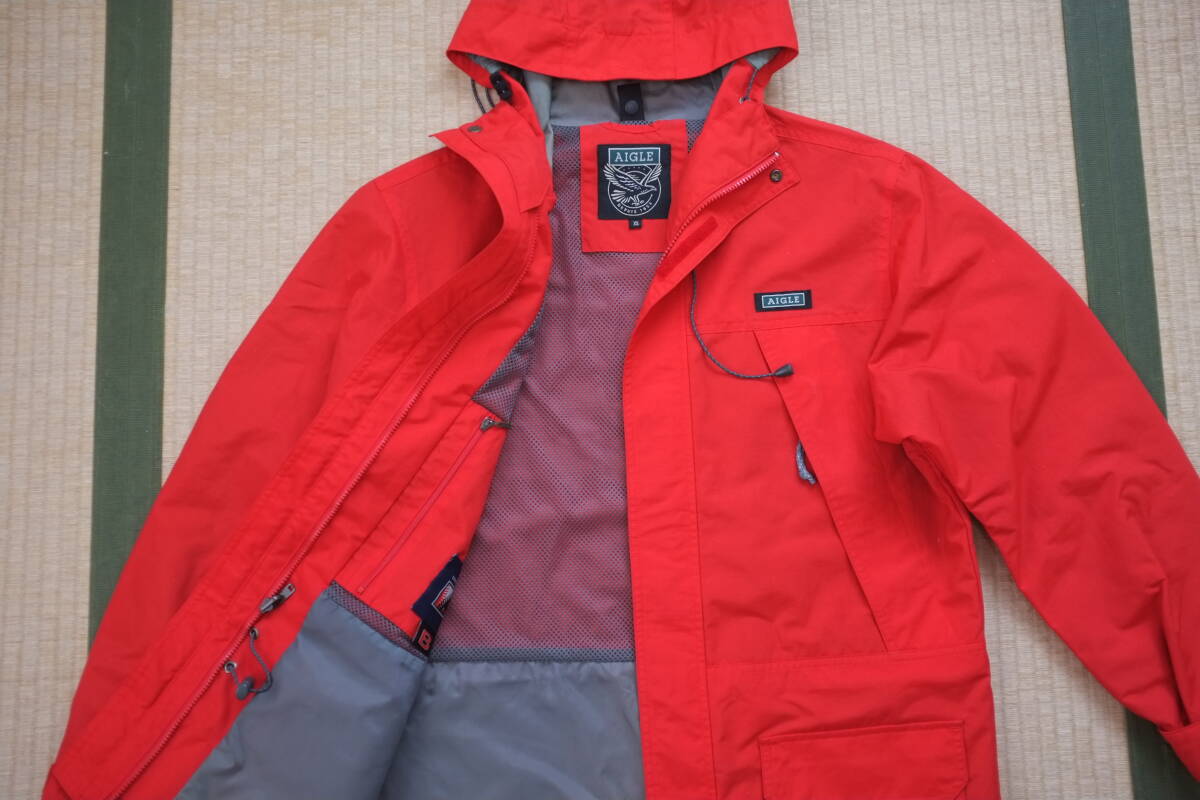 AIGLE型番 8504ー27422THERMO KIT-J-B表地 ナイロン 100%裏地 メッシュ部分 ポリエステル 100%裏地 切替部分 ナイロン 100%ヤマトインターナショナル(株)サイズ表記 XS肩幅48cm 身幅57cm 袖丈58cm 着丈77cm 重量650gです。傷、スレ、汚れ、変色、ほころびはありません。着用感が少なくきれいです。各ジッパー、ゴムはスムーズです。センタージッパーはWスライターで下からも開けられます。内側右にポケットがあります。