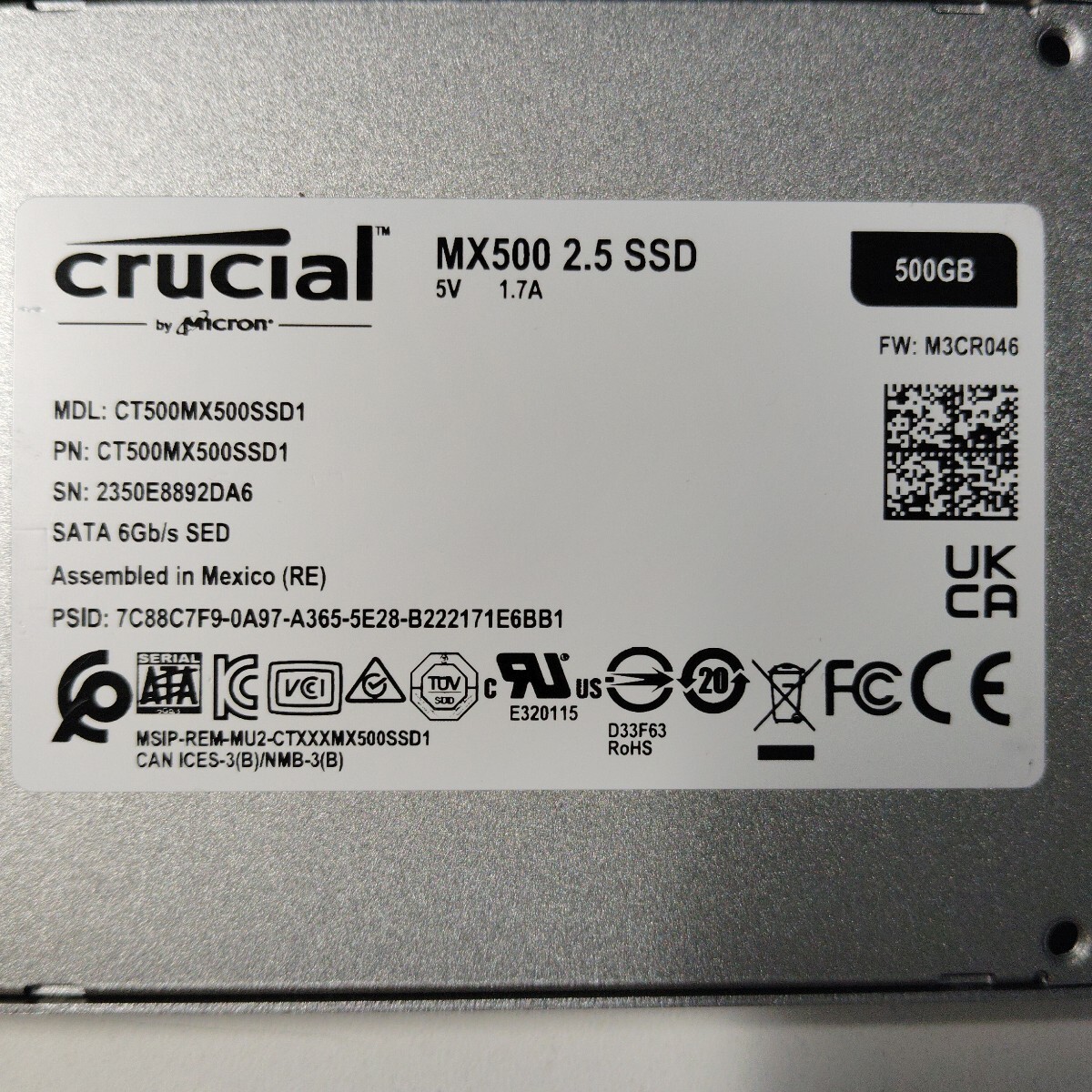 CT500MX500SSD1 [Crucial MX500 2.5インチ 7mm SATA 500GB]