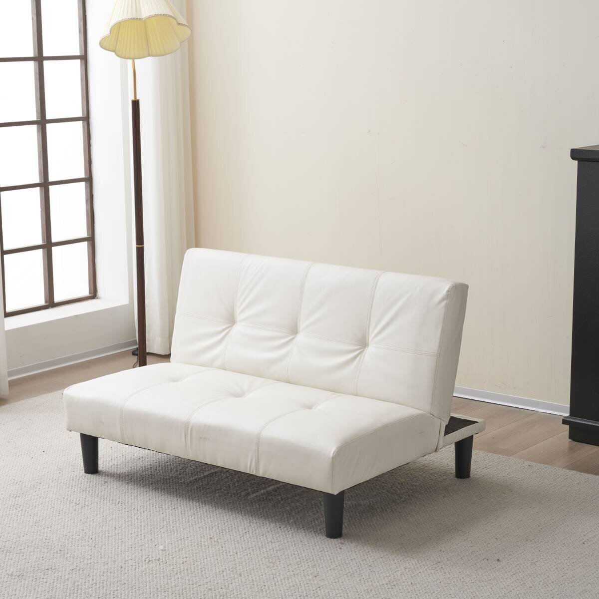 【背もたれ3段階調節】このソファの背もたれは3段階で調節が可能で、最も低い段階では背もたれを平らにしてベッドとして使用できます。