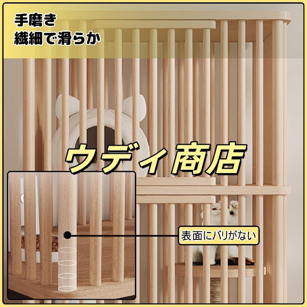 パイン材: 猫の家 猫 ケージ 厚みのあるパイン材を使用しているので、通気性がよく、臭いも出ません。耐腐食性、耐摩耗性があり、丈夫で耐久性に優れているため、猫にとって快適な生活環境を作り出します。 研磨済み: ケージ 猫 多層猫ケージ 表面はバリのない滑らかな表面
