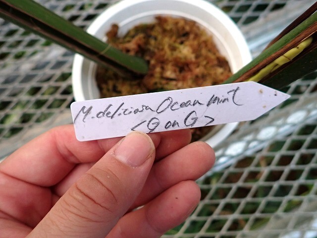 新葉展開時にオーシャンミント色の斑入りが出て、徐々に2色斑に変わる実生セレクト