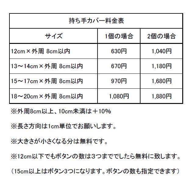 心配な方は持ち手をぐるっと一周測った外周を教えて頂けたらそちらに合わせてお作りできます。