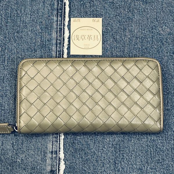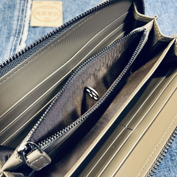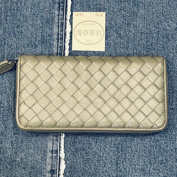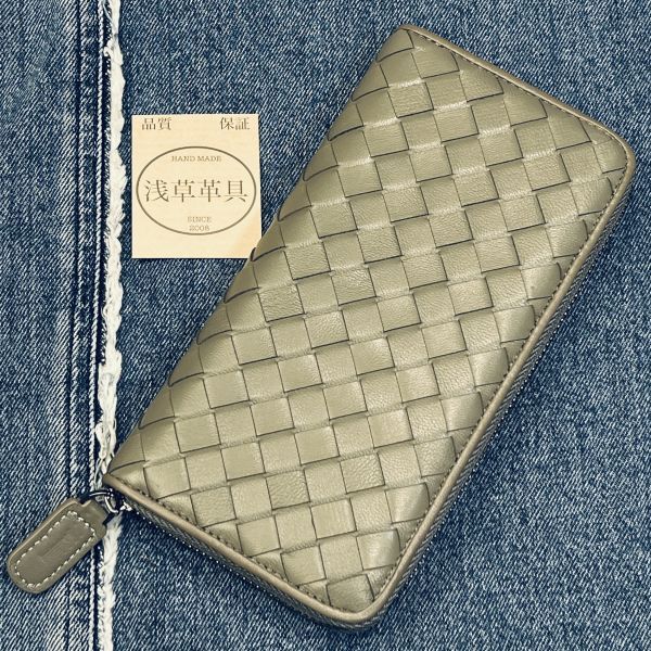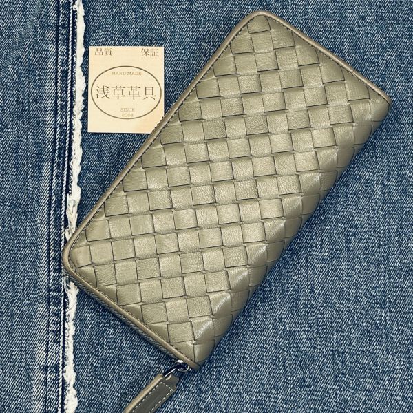 【浅草革具】 イントレチャート ラムスキン 羊革 長財布 メンズ財布 ラウンドファスナー ブランド 革財布 本革 新品 グレー