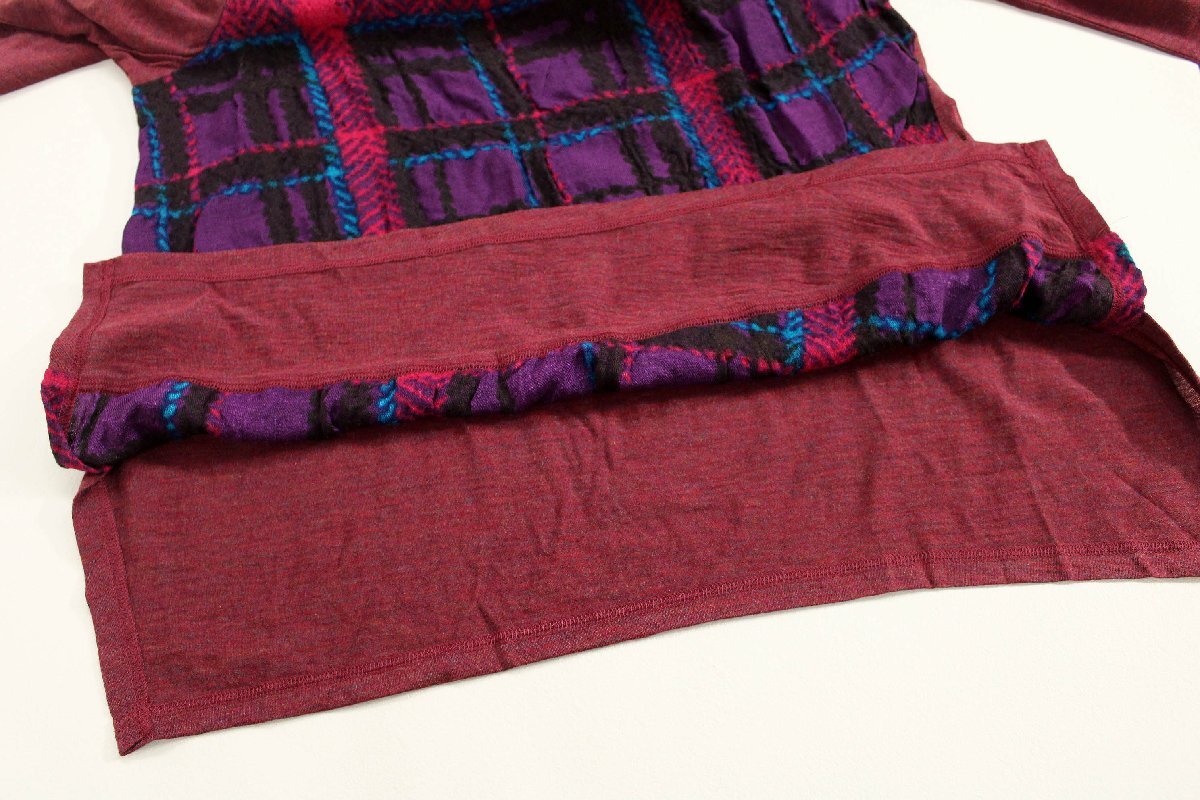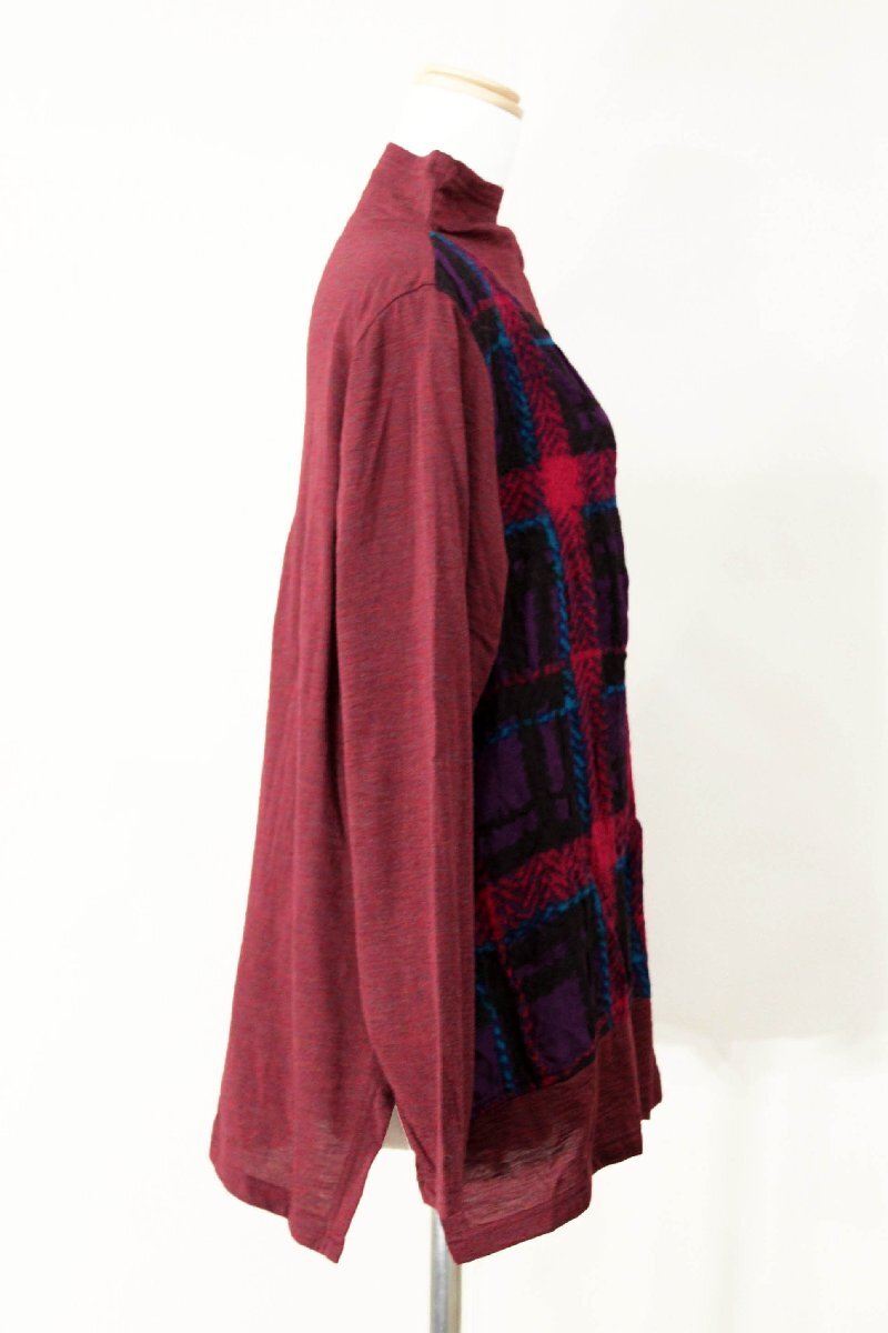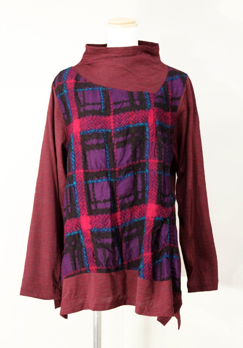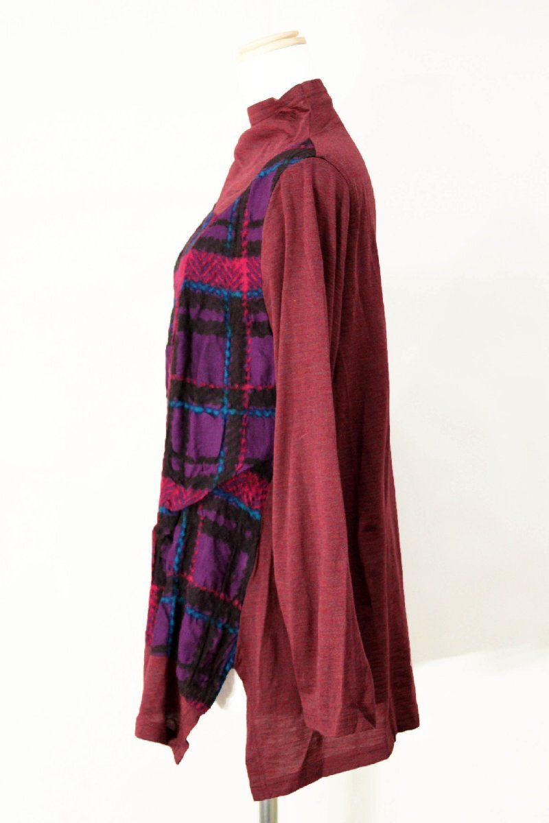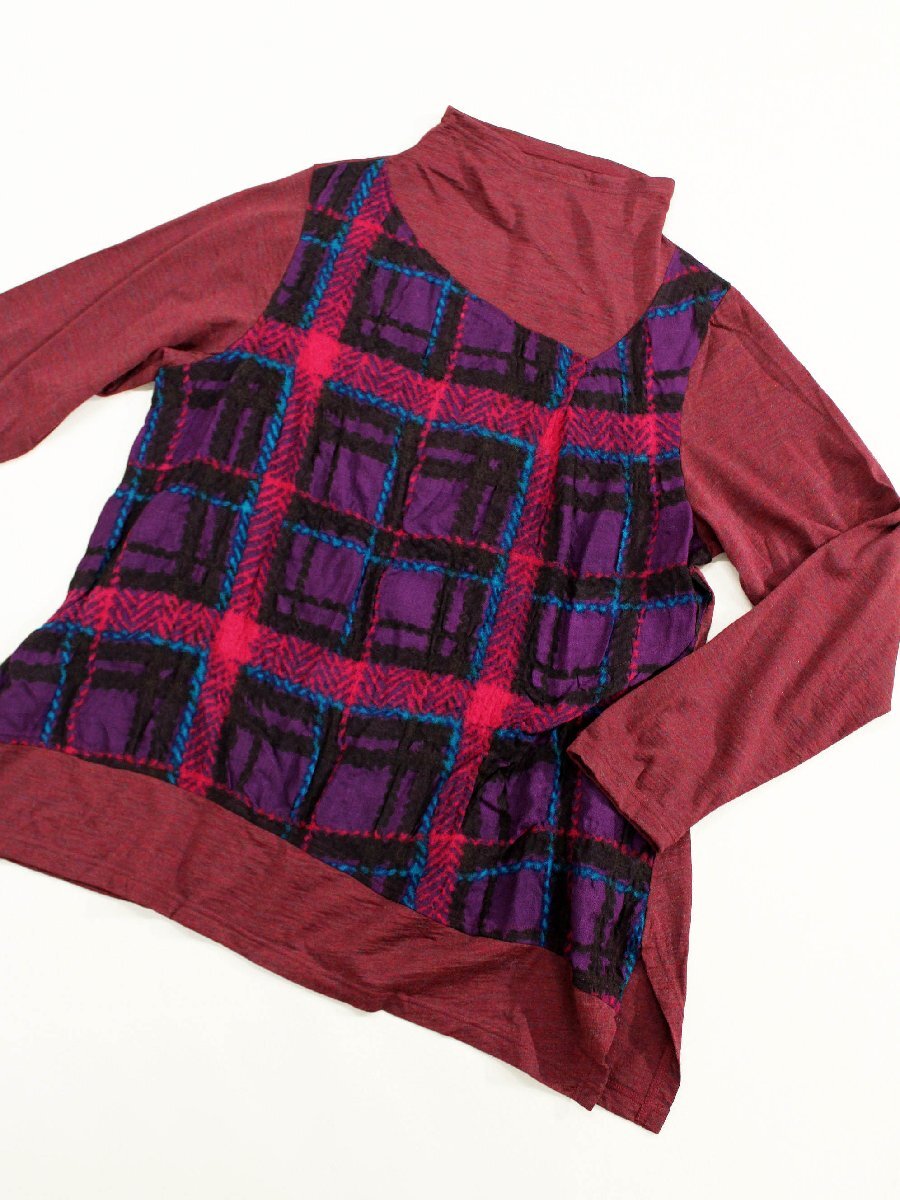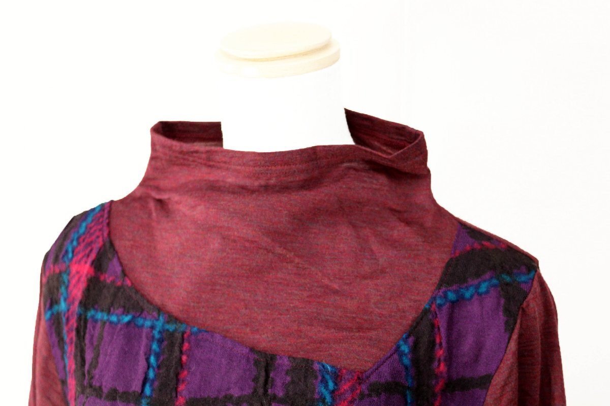 ☆美品☆慈雨センソユニコ/レイヤード風格子柄切替長袖チュニック:40/えんじ系yx865