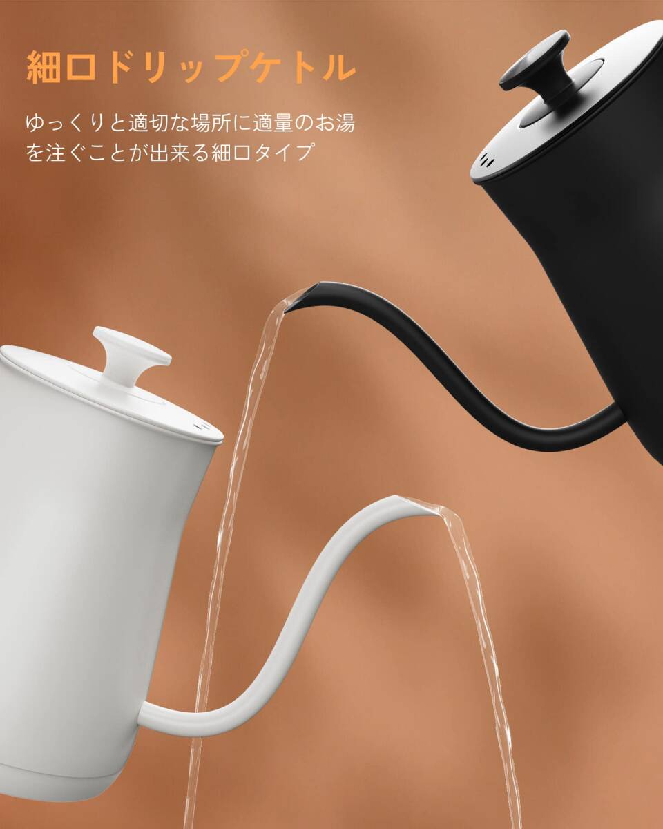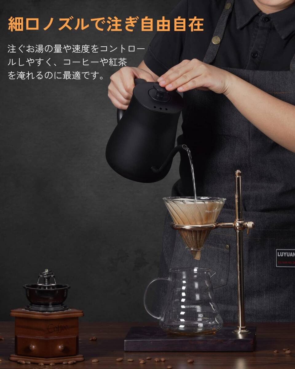 おすすめ 高級感溢れる細口ドリップケトル:0.8L容量&1000W 耐久性抜群