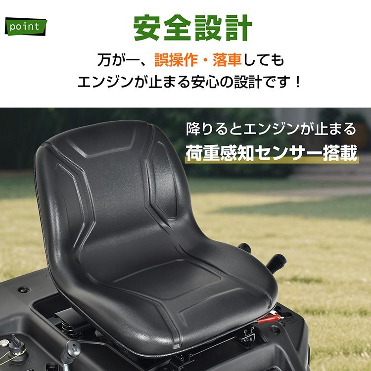 ■荷重感知センサー搭載で、誤操作や落車時も自動でエンジン停止。安心して使えます。