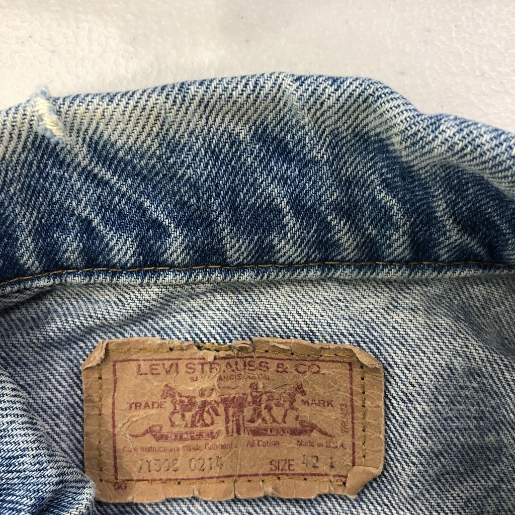 | 【商品管理番号】 O9669 【ブランド】 Levi's/リーバイス 【サイズ】 42L 【実寸サイズ】 肩幅:約45cm 着丈:約62cm 身幅:約53cm 袖丈:約64cm 【主な素材】 表地 : コットン 【色】 ブルー 【仕様】 生産国 : USA製 80年代 ワーク、 71506 【状態】 汚れ:襟、袖、袖先、腹部 | |||