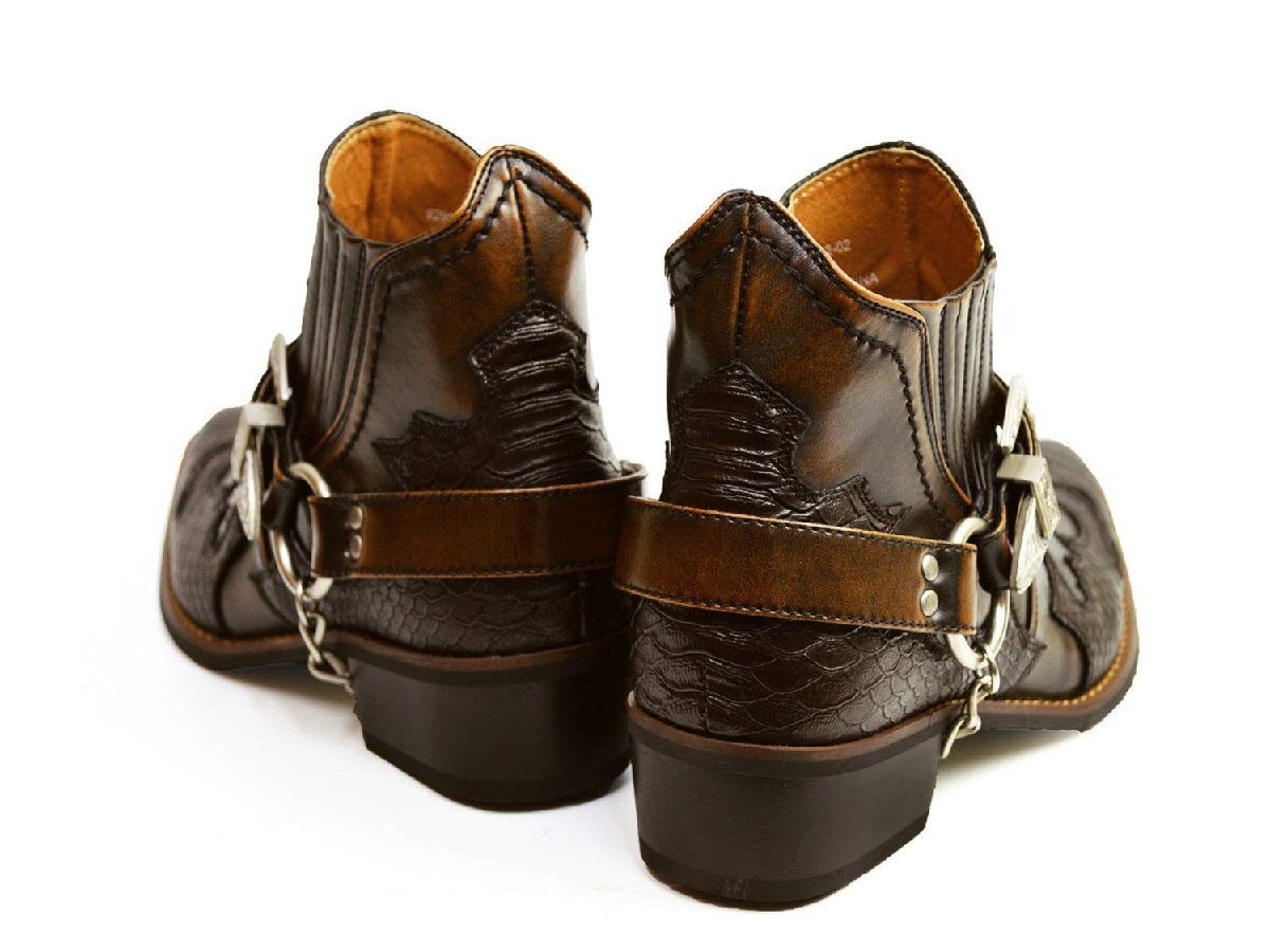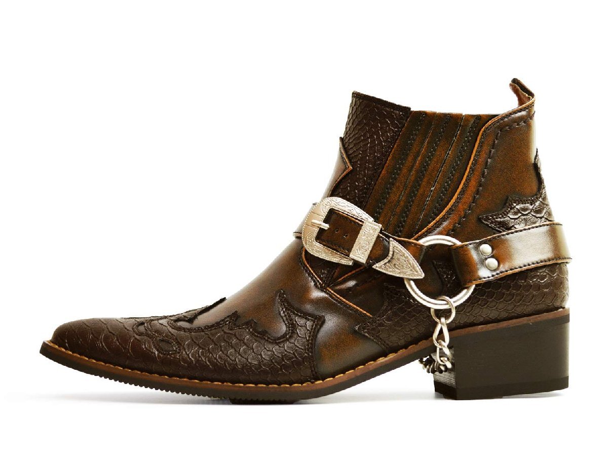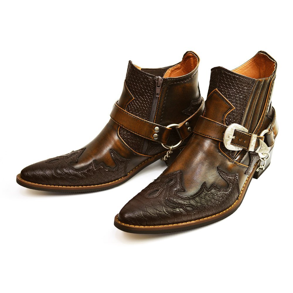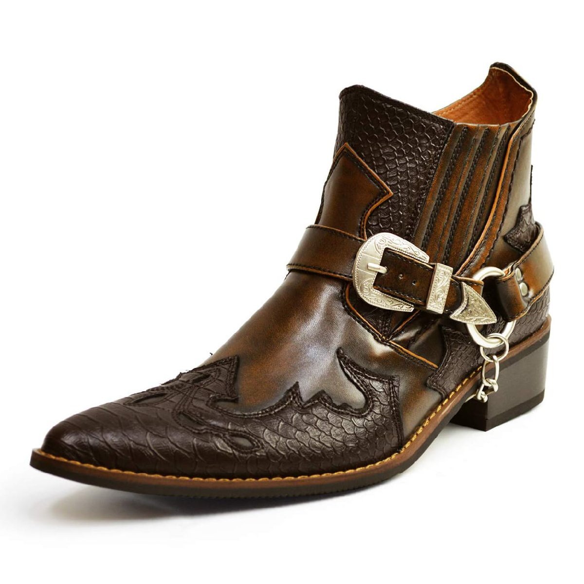 メンズ ウエスタンブーツ 脚長 ヒールアップ サイドゴア サイドジッパー ヘビ柄 パイソン バックル リングブーツ 男 靴 ze6001