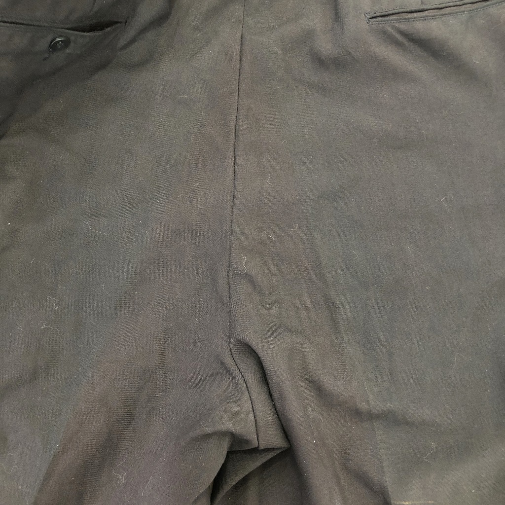 | 【商品管理番号】 O9798 【サイズ】 表記無し(≒ Mサイズ相当 ) 【実寸サイズ】 ウエスト:約86cm 股上:約40cm 股下:約75cm わたり幅:約38cm 裾幅:約21cm 【主な素材】 表地 : ウール 【色】 ブラック 【仕様】 60年代 フォーマル、ヴィンテージ サイドライン 側章 スラックス 【状態】 汚れ:ひざ キズ:腰 特記事項:色褪せ 内股部分色褪せ有り | |||