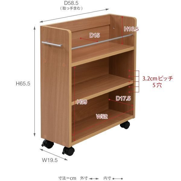 【カラー】 ダークブラウン、ナチュラル、ホワイト 【サイズ】 <外寸> 幅19.5×奥行58.5×高さ65.5cm/個 <内寸> オープン部:幅52×奥行17.5×高さ39cm 上部オープン部:幅52×奥行15×高さ16.5cm 【材質】 本体:プリント紙化粧合板 【収納数(1個あたり)】 文庫本:(約)102冊 コミック:(約)102冊 CD:(約)153枚 DVD:(約)68枚 Blue-ray:(約)120枚 【耐荷重】 固定棚:(約)10kg以下 可動棚:(約)7kg以下 【生産国】 インドネシア 【梱包】 サイズ:67×53×30cm、重量:28.1kg 【その他】 ・キャスター4個(うちストッパー付き2個)/個 ・背面化粧有り 【組み立て品】 お客様による組み立てが必要です。 |