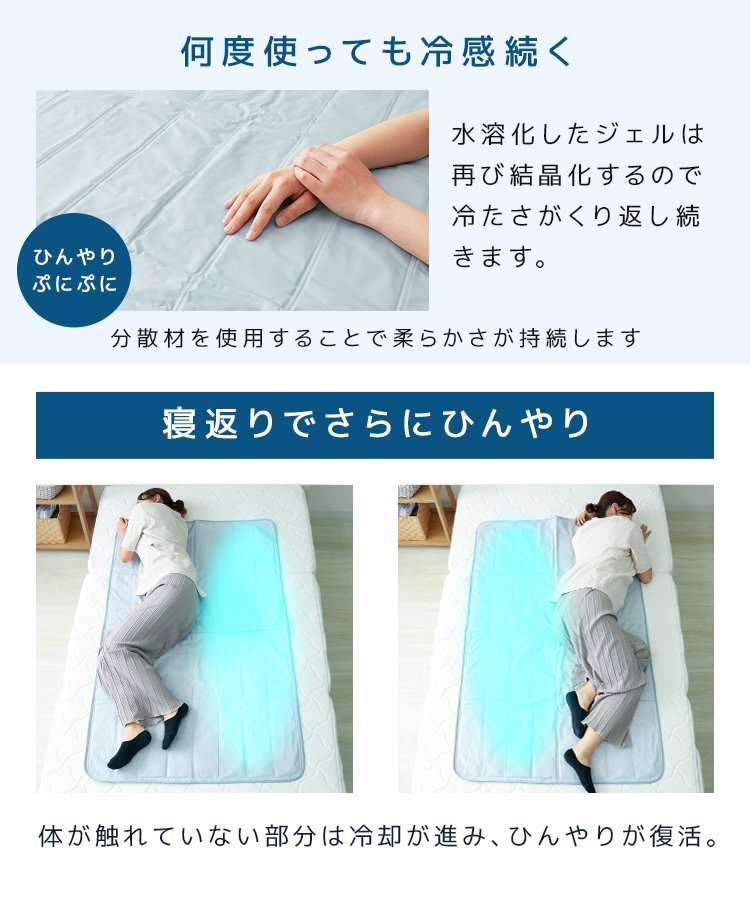 | \ひんやり続く、心地よい冷感/ 触れるだけで瞬間ひんやり。 優れた冷却効果、繰り返し使える素材で、省エネ対策にもオススメ! 驚きの冷却効果! 冷やす過程は不要!!塩を原料とした特殊冷却素材を採用。 冷感ジェルが熱を吸収・放熱し、ひんやり感をキープします。 水溶化したジェルは、再び結晶化するので繰り返し冷たさが続きます。 こだわりの安全仕様! ジェルが偏らないように分割縫製を施しており、均一に冷たさを感じることができます。 抗菌・防カビ効果のある素材を使用。 衛生面にも配慮し、人や環境にやさしい素材で作られています。 低ホルムアルデヒドなので、小さなお子様も安心して使用していただけます。 省エネで経済的♪ 電気を使わないのでとっても経済的! 使いたい場所にサッと敷くだけで使えます。 エアコンが苦手な方にもオススメです♪ ■商品コード:FEH002MV ■商品仕様 カラー:ミスティサボン サイズ:(約)90×140cm 重量:(約)5.2kg 素材:ポリエステル100%、PVCフィルム、水、硫酸ナトリウム、塩化ナトリウム、セルロース、ピロリン酸塩 Q-max値:0.615 ※Q-maxとは物体に接触する際に感じる熱移動を評価する数値のことを指します。 数値が大きいほど冷たいと評価されます。 ■注意事項 ・表面が汚れた場合には、中性洗剤を浸して固く絞ったやわらかめの布などでよく拭き取り、 さらに洗剤が残らないよう拭き取り、風通しの良い場所で陰干しをしてください。 ・環境により中材が一部固まった場合は、45℃以上のお湯に浸すと水溶化します。 塊がどうしても気になるという場合には、中材を水溶化させたあと、 26℃以下の場所で中材が偏らないように平らな状態で放置し、再結晶化させてください。 ・商品は、モニターによって色合いが異なって見える場合があります。 ・仕様・デザインは改良のため予告なく変更することがあります。 ■保障期間 7日間 ※商品到着後7日以内の初期不良・破損のみご対応させていただきます。 【新品未使用品です】 |