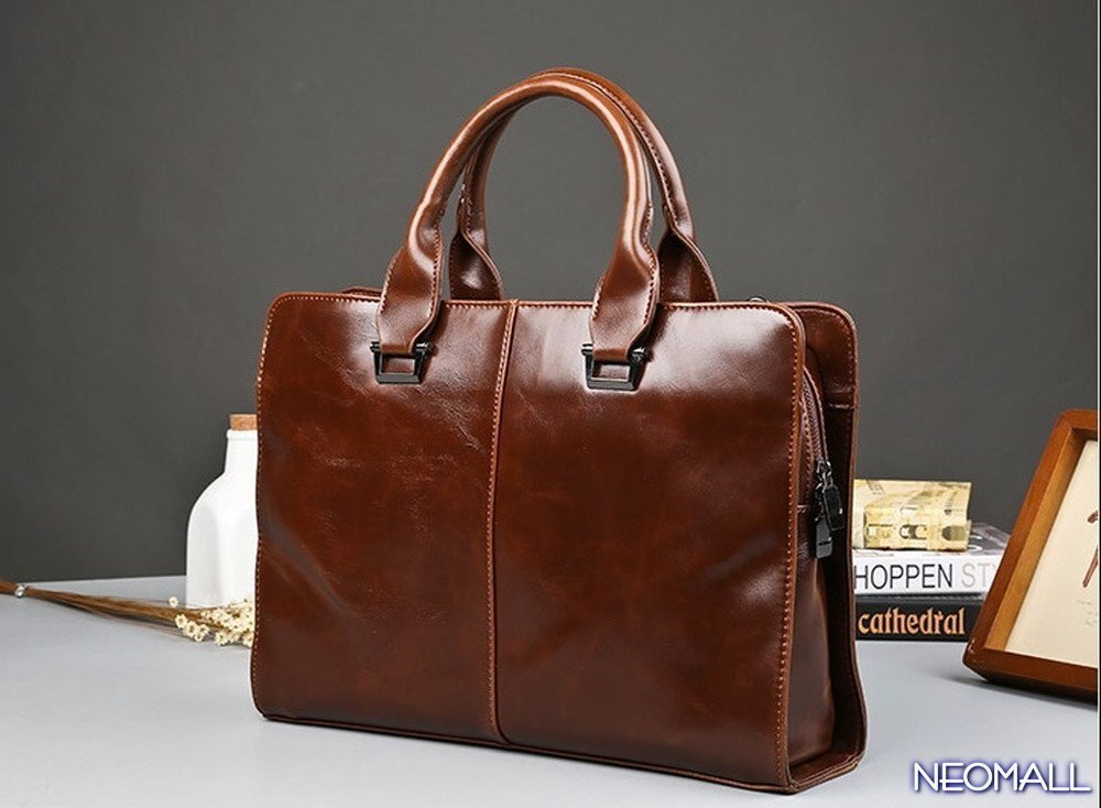 人気☆ 新品 メンズ 高級PUレザー ビジネスバッグ【580】ブラウン ブリーフケース ショルダー スクエア 横型 大人気 上質 質感◎ 未使用