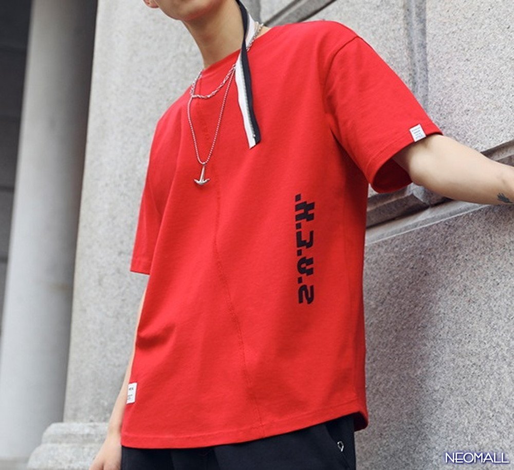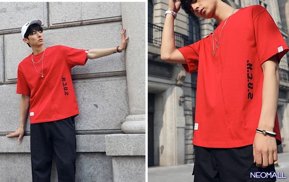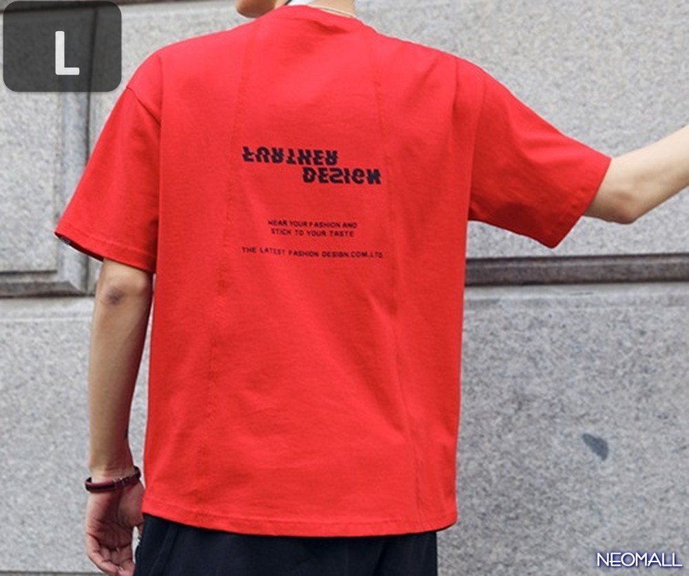 人気商品 ☆ 丸首 半袖 Tシャツ【472】 レッド Lサイズ トップス シャツ シンプル イラスト デザイン 春夏