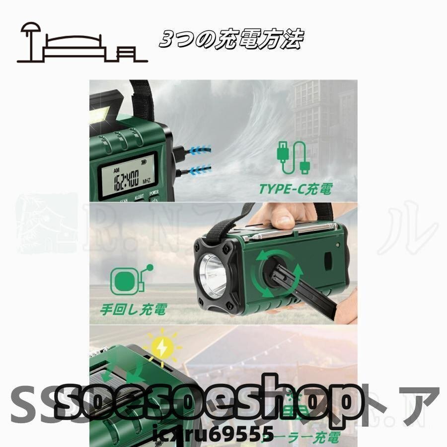 たくさんの展出品の中に弊店の製品をご覧頂き、ありがとうございます。商品状況:新品未使用1. AM/FM/NOAAデジタル調整ラジオです2.自働捜台,存台3.時計、アラーム機能です4.1000OMAHの電池です5.手回し発電/ソーラー充電/USB充電です6. SOS通報です7.イヤホンジャックです8.0.