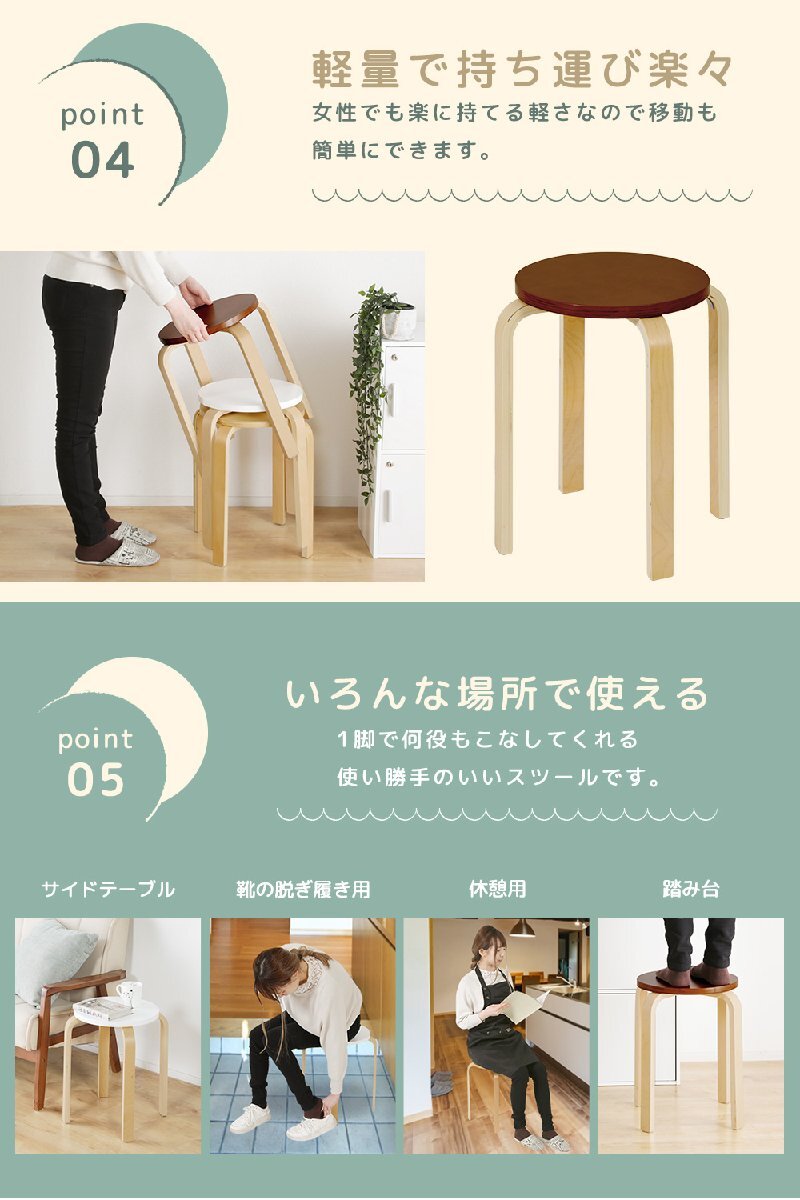 スツール 4脚組 スタッキングスツール スタッキングチェア 木製 重ねられる コンパクト 省スペース まとめて