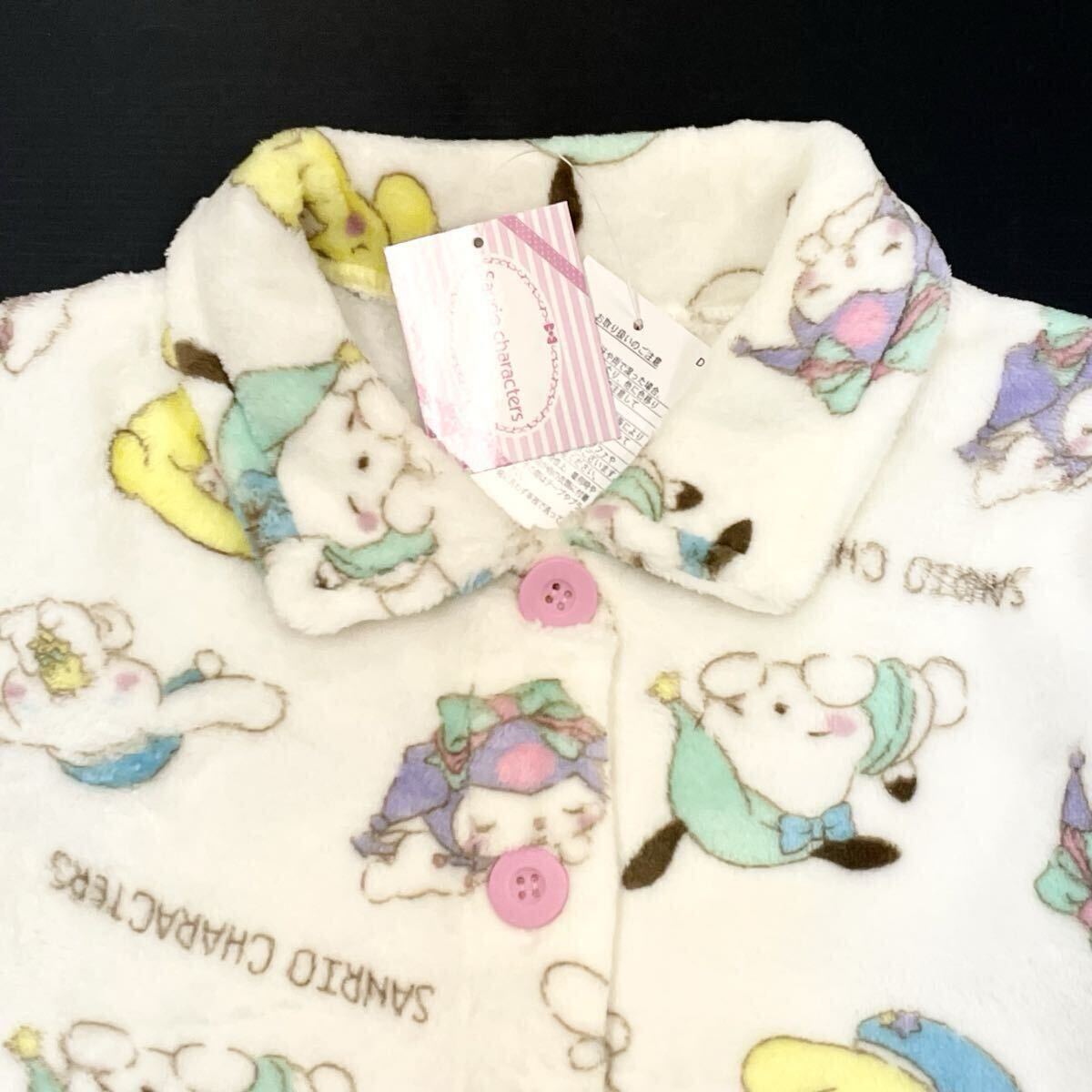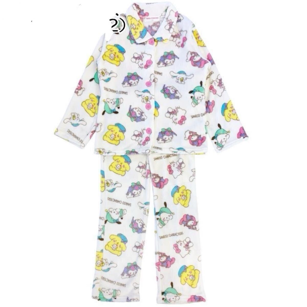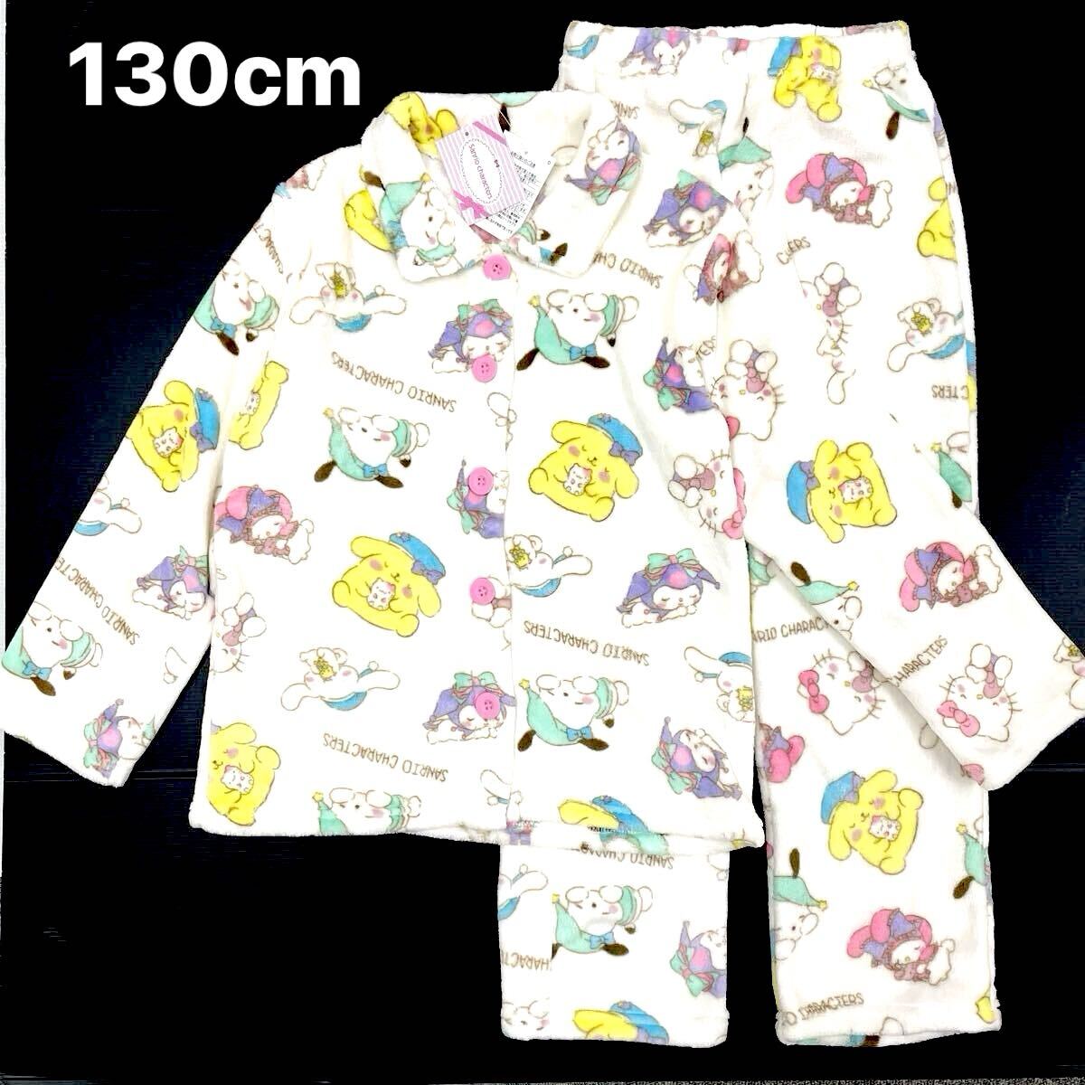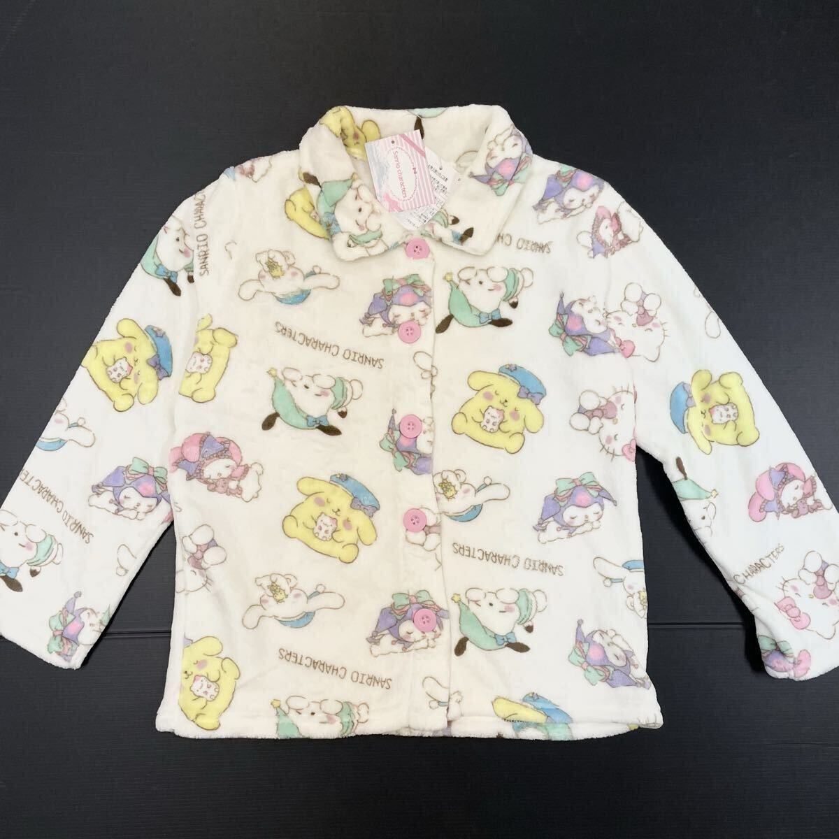 新品64636 サンリオキャラクターズ 130cm オフホワイト 前開き長袖ミンクフリースパジャマ上下セット ルームウェア ガールズ ジュニア子供