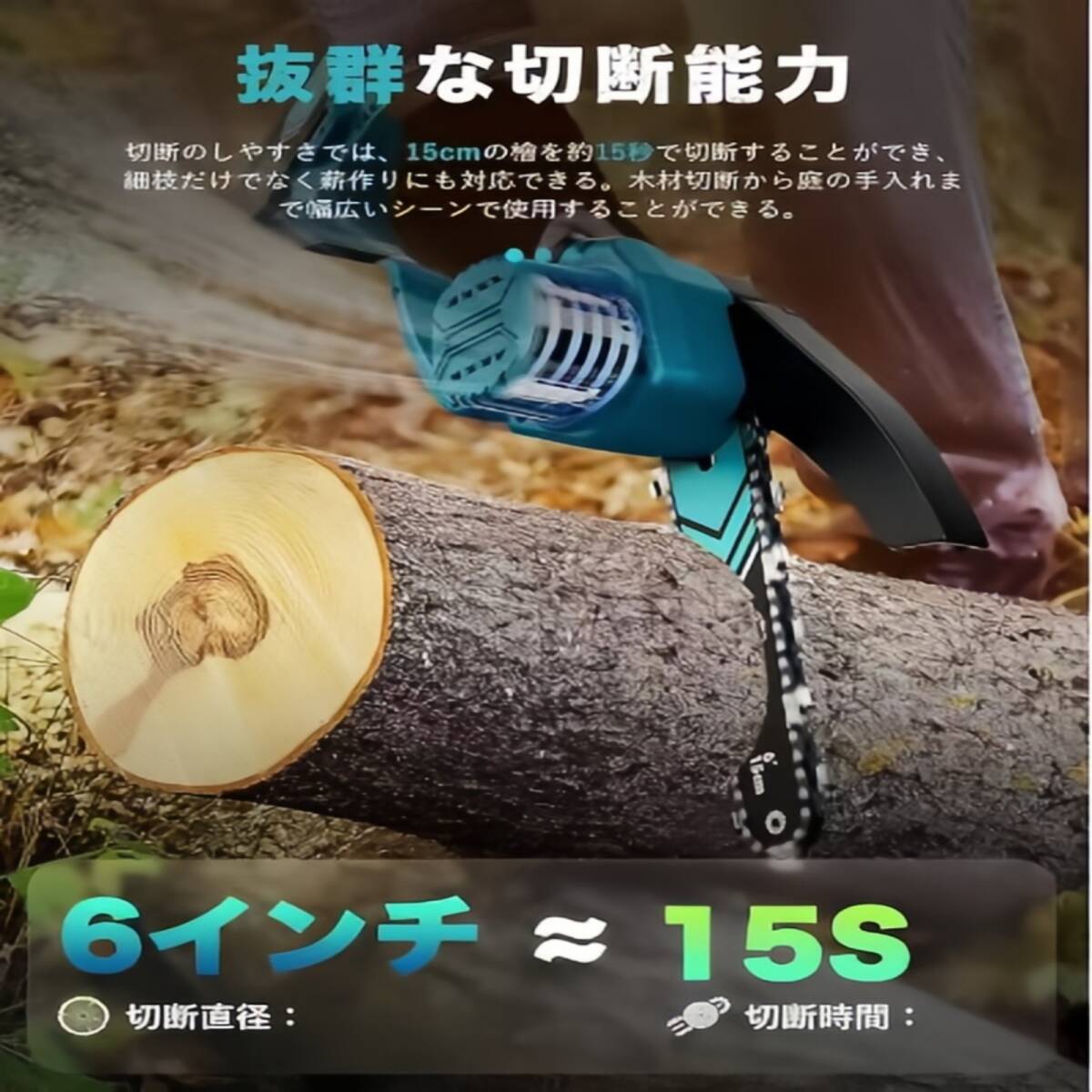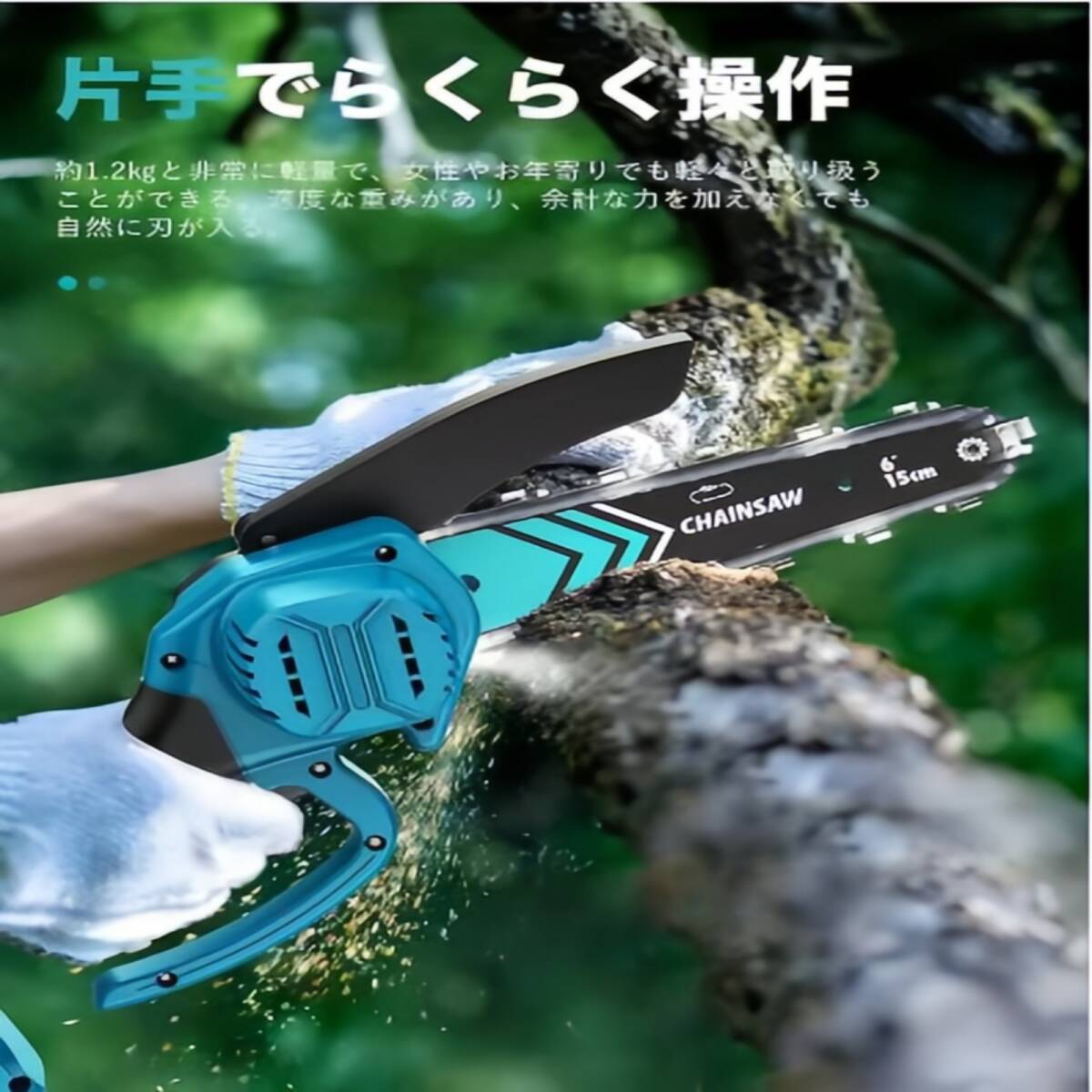 チェーンソー 充電式 電動チェーンソー 小型チェンソー コードレス 強力 片手 軽量